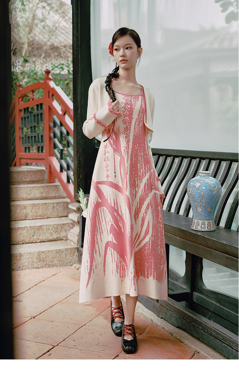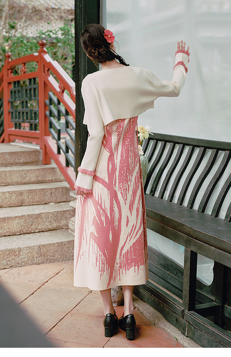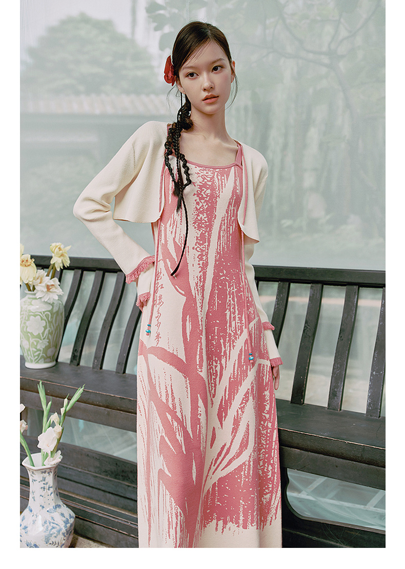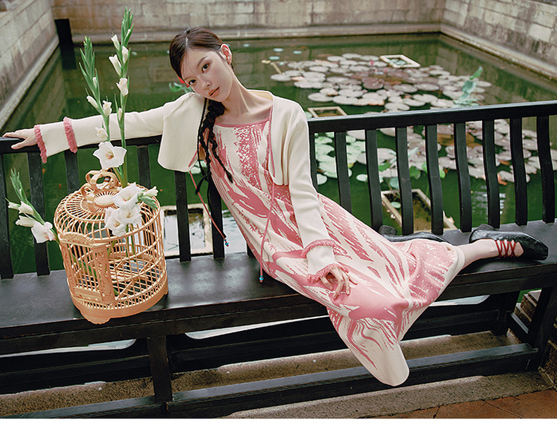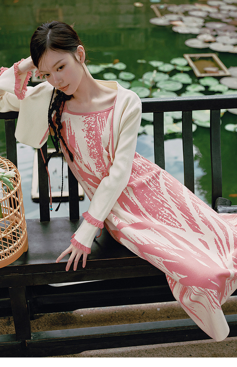 两三事 如梦人间 2025春季新款甜美拼色流苏绑带短款针织开衫女