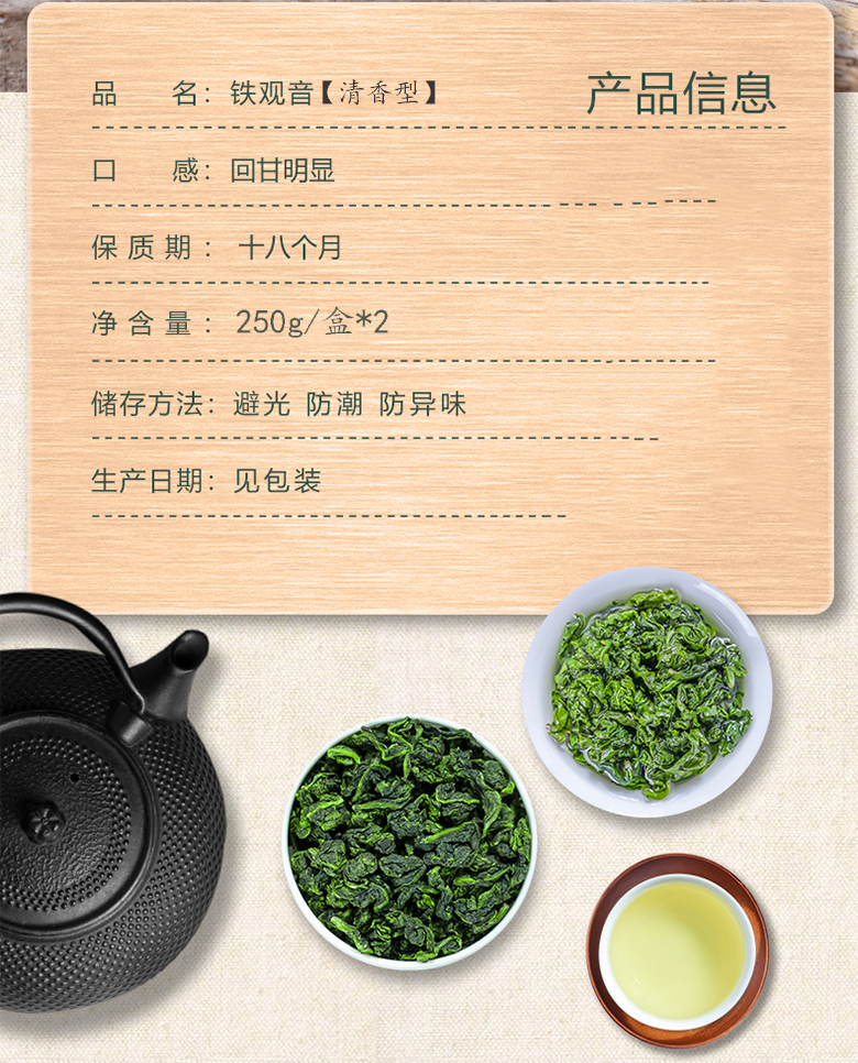 乌龙茶:清香铁观音( 250g/罐*2)铁盒装