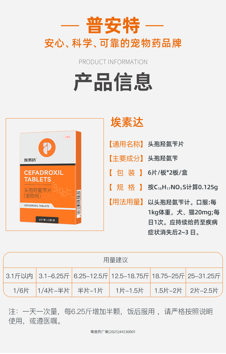 普安特宠物头孢消炎药狗狗猫咪皮肤炎症脓皮症泌尿感染尿道炎耳炎头孢羟氨苄片埃素达