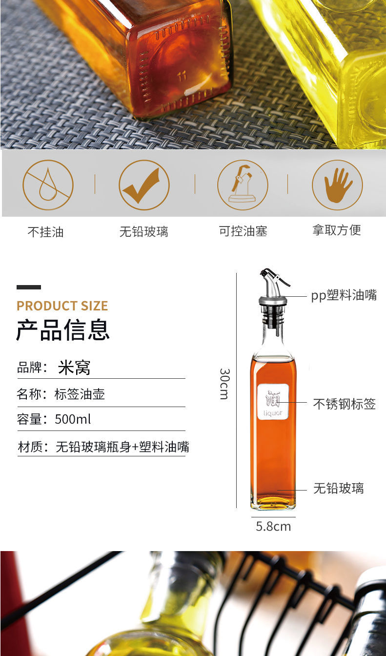 【一套4瓶装】油壶玻璃家用厨房用品油瓶防漏酱醋瓶调料瓶