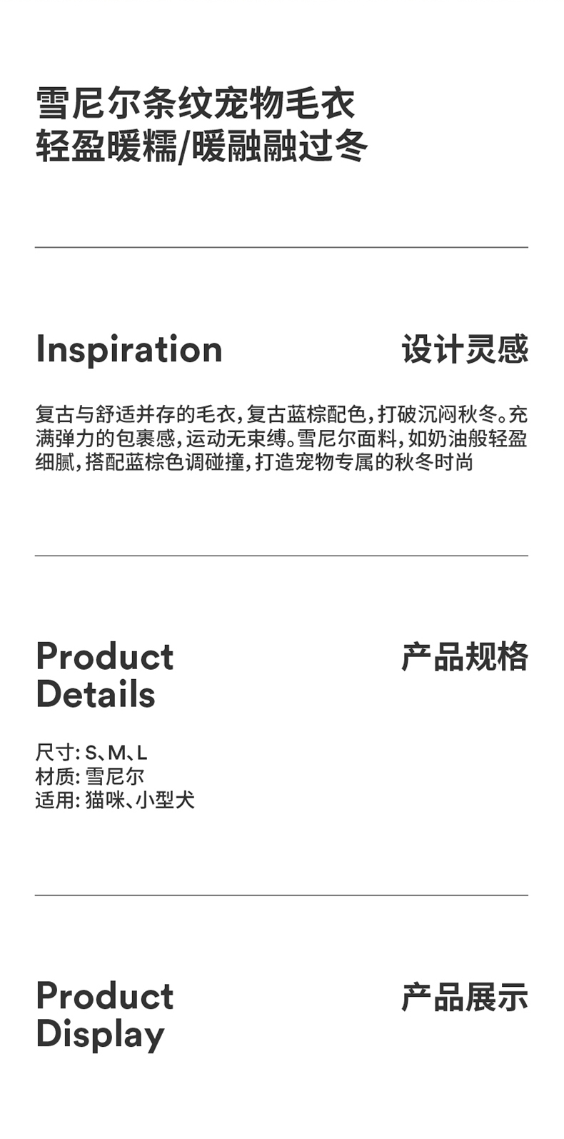 zeze雪尼尔条纹宠物毛衣-(包邮)-B