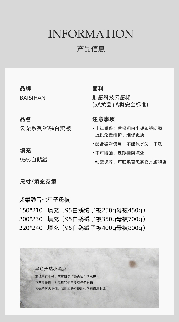 2023新款百思寒 95%白鹅绒羽绒被 超静音四季子母被150cm*210cm(下单现做7天发货) [福利品]