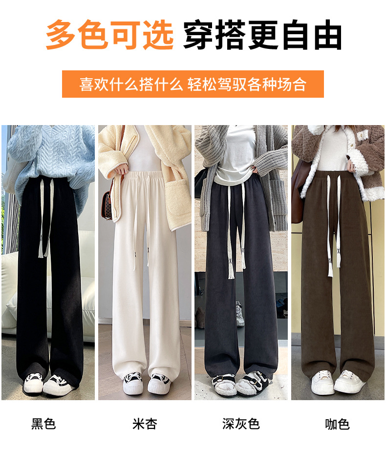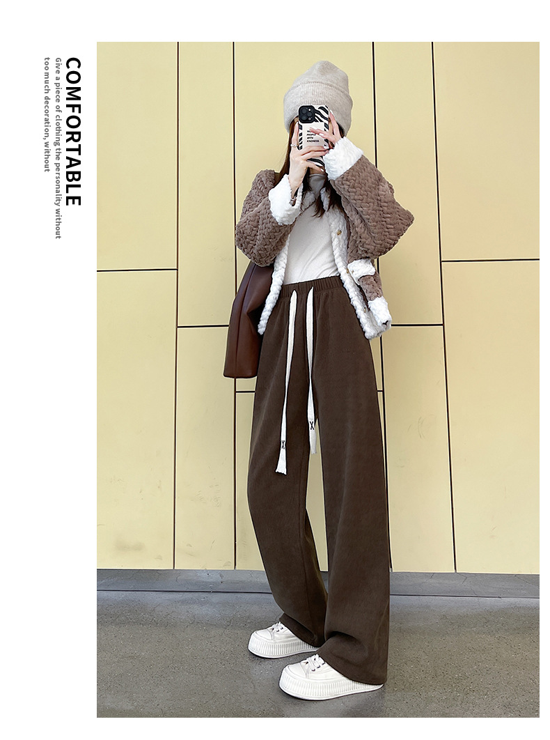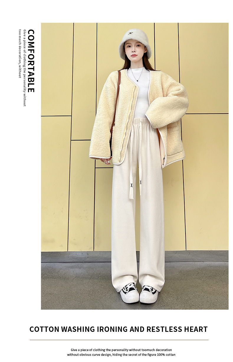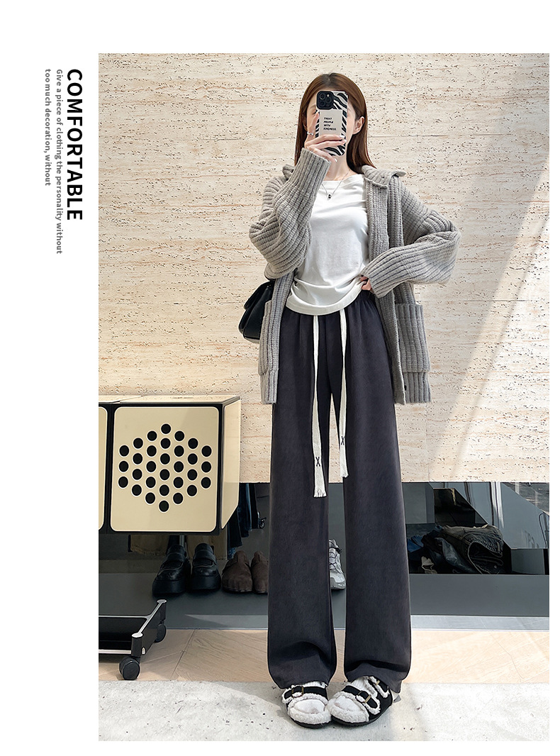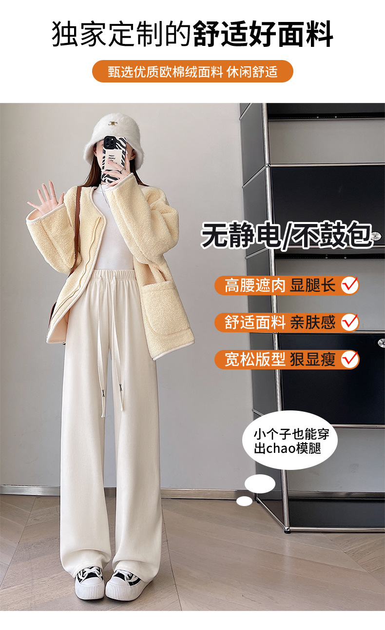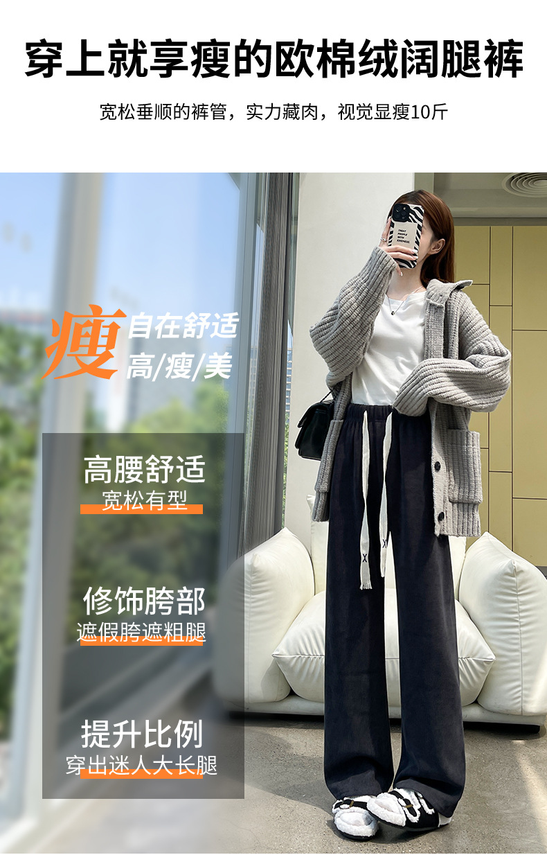 柔软亲肤欧棉绒雪尼尔阔腿裤女秋冬季2025新款窄版直筒宽松休闲拖地灰色运动裤子