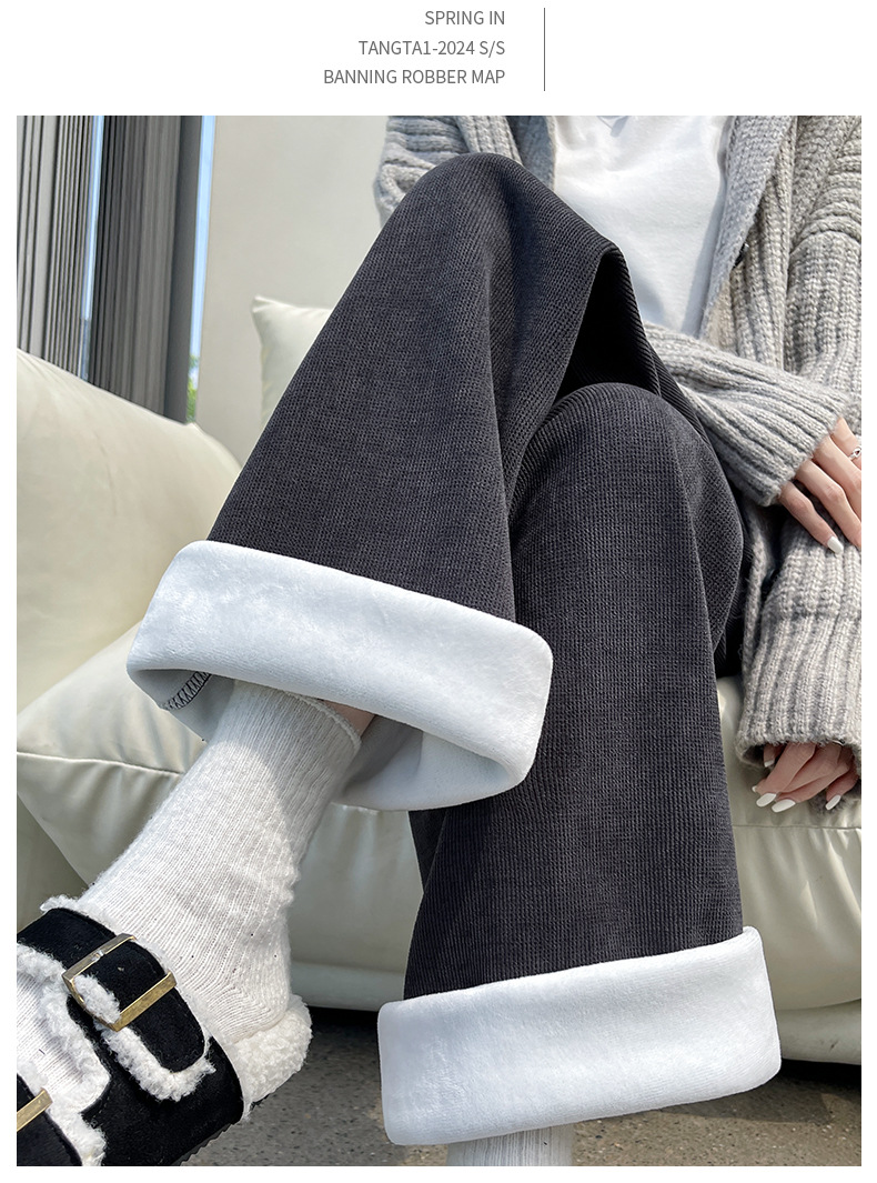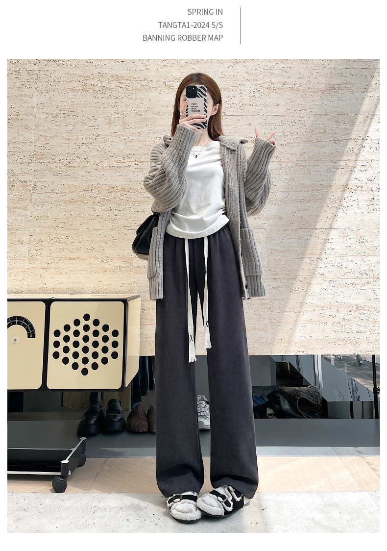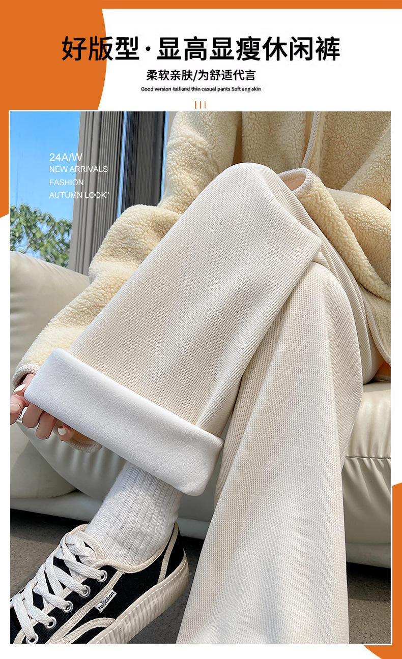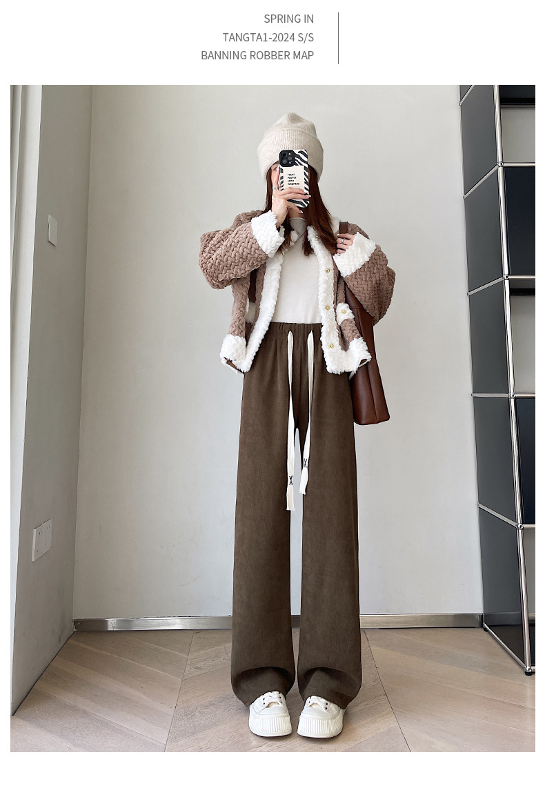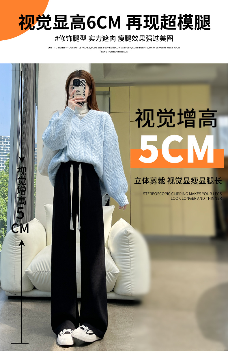 柔软亲肤欧棉绒雪尼尔阔腿裤女秋冬季2025新款窄版直筒宽松休闲拖地灰色运动裤子