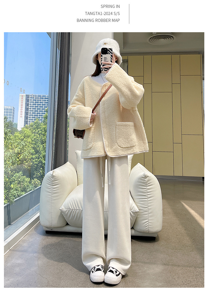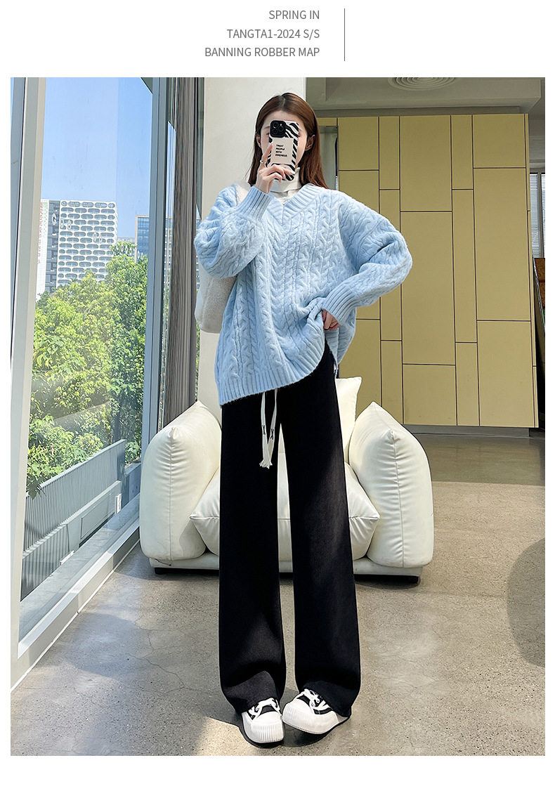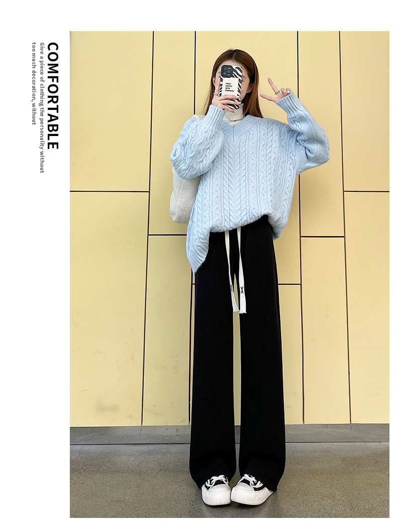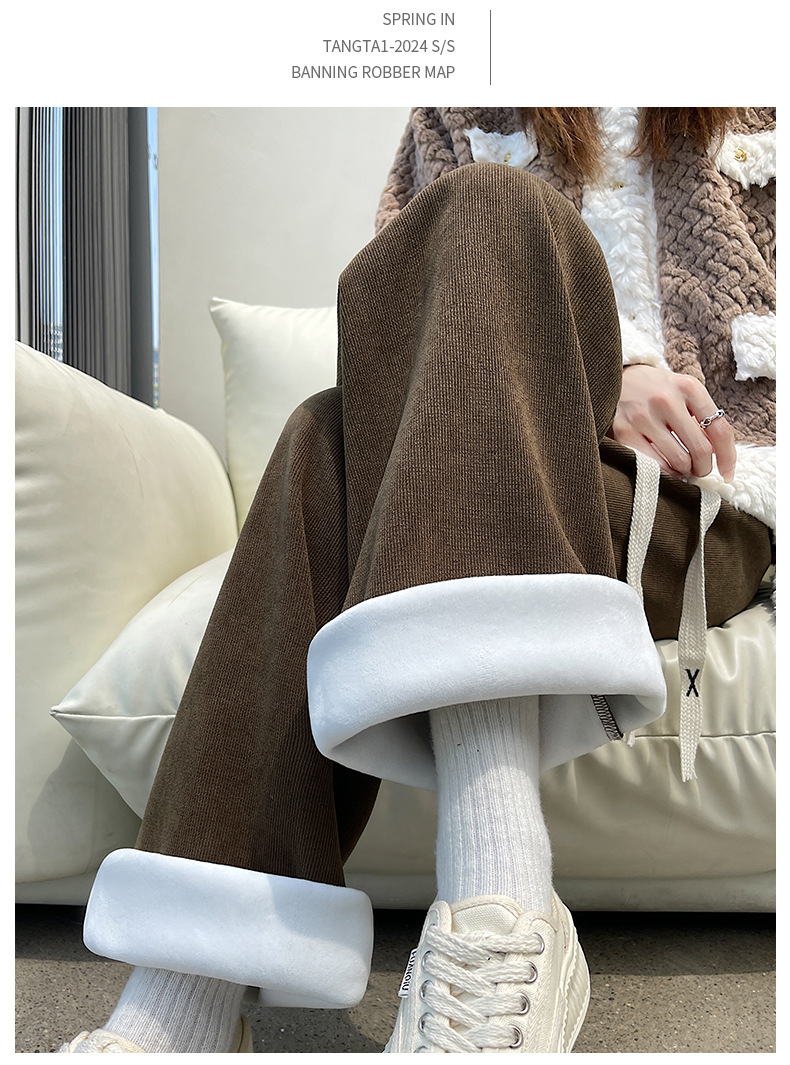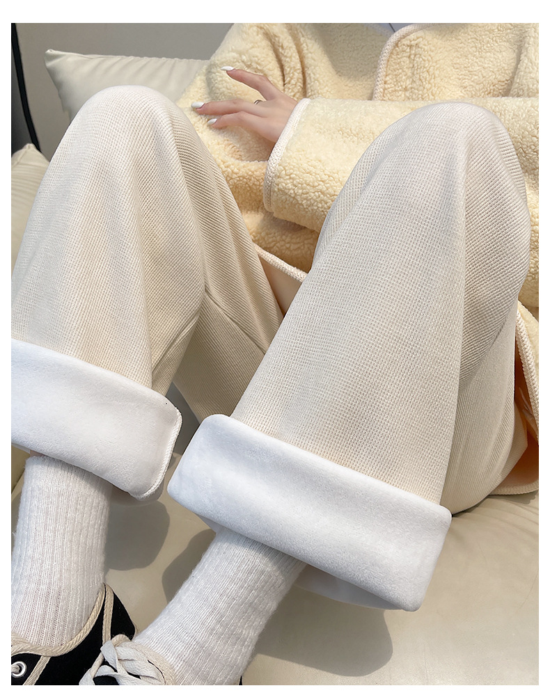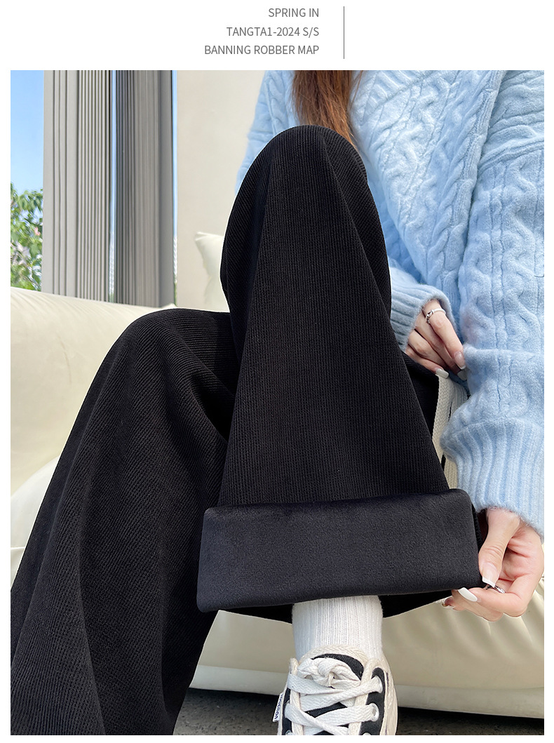 柔软亲肤欧棉绒雪尼尔阔腿裤女秋冬季2025新款窄版直筒宽松休闲拖地灰色运动裤子