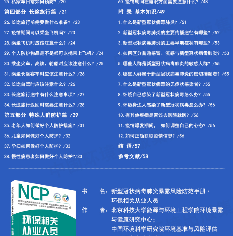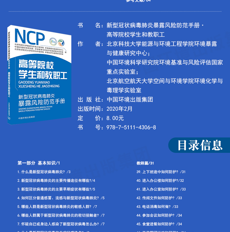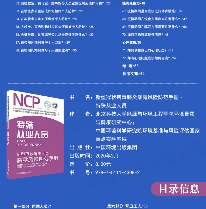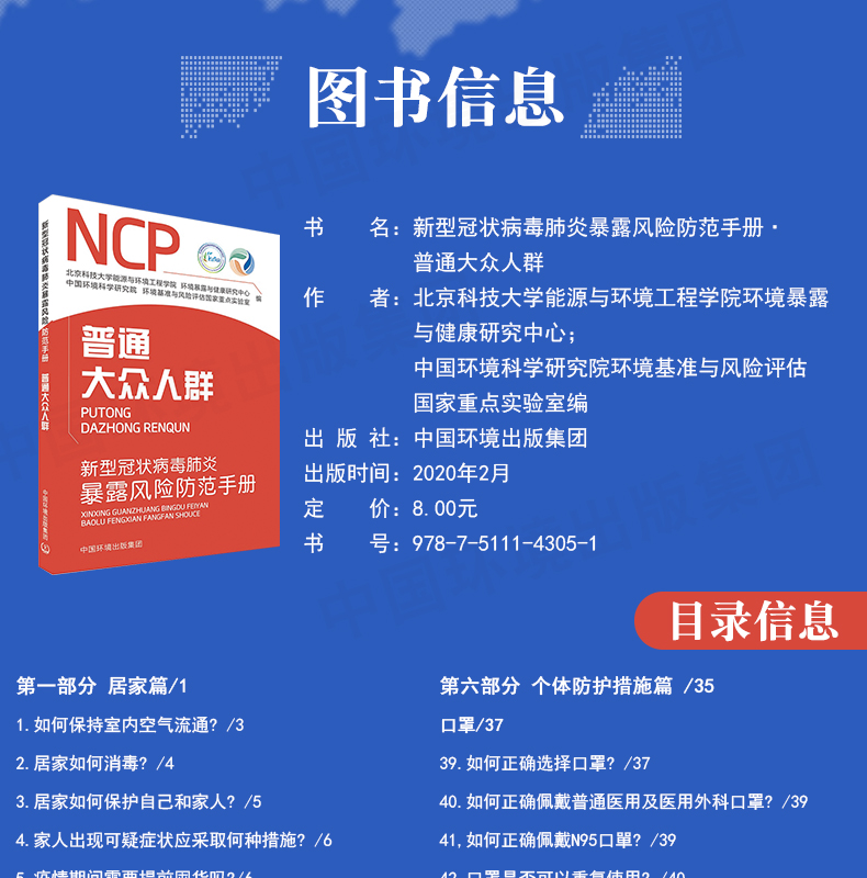 新型冠状病毒肺炎暴露风险防范手册环保相关从业人员普通大众人群高等院校学生和教职工+特殊从业人员 6·5环境日公众普法宣传资料