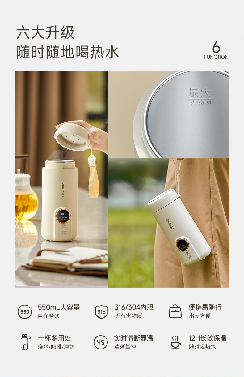 【德国Zemkon 便捷式热水杯】小巧精致,却隐藏着12小时长效保温的奇妙能力;她,多功能应用,316/304材质,真正做到了一键触控。无论上班族还是旅行爱好者,都为之倾倒!