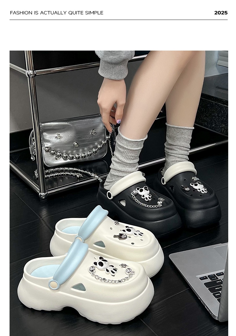 【特价39元】春夏新品乐福豆豆厚底花园鞋+卡通可爱熊猫乐福鞋花DIY【WG25230】