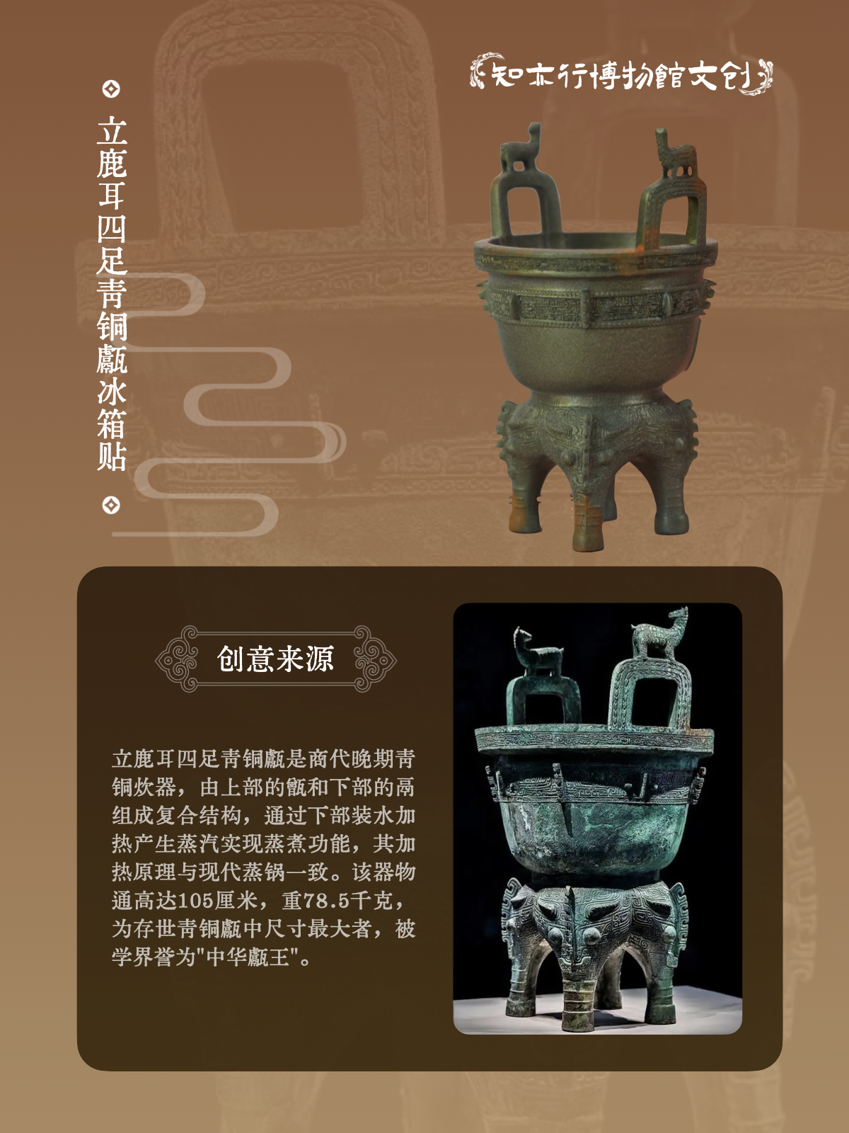 江西博物院立鹿耳四足青铜甗立体冰箱贴文创旅游纪念品