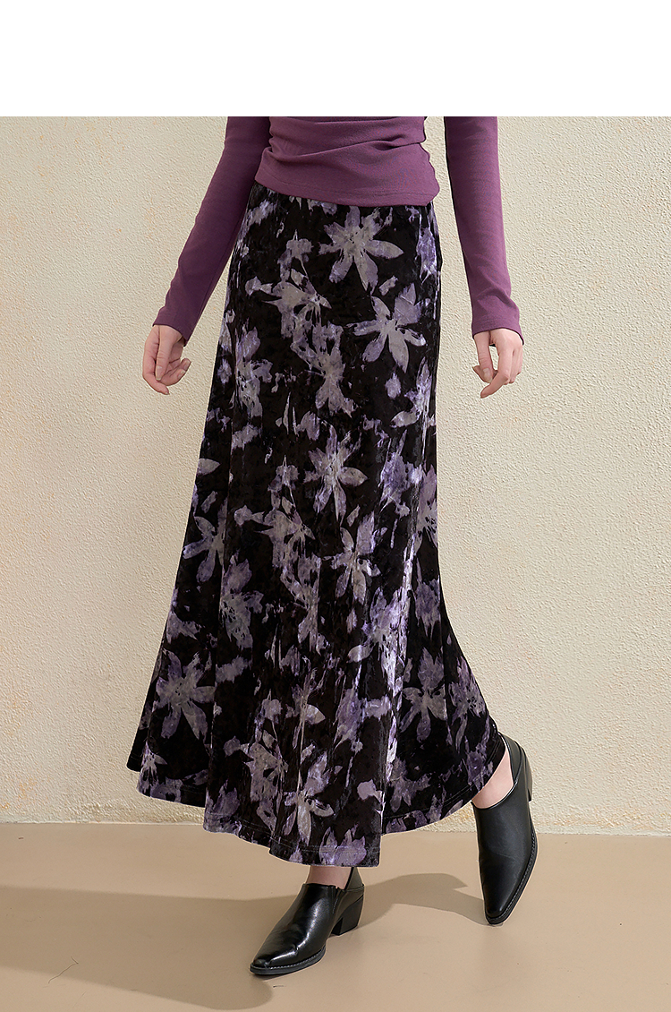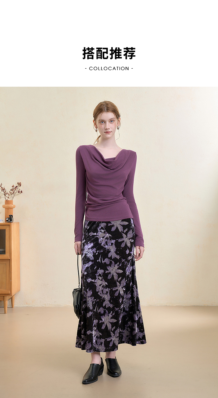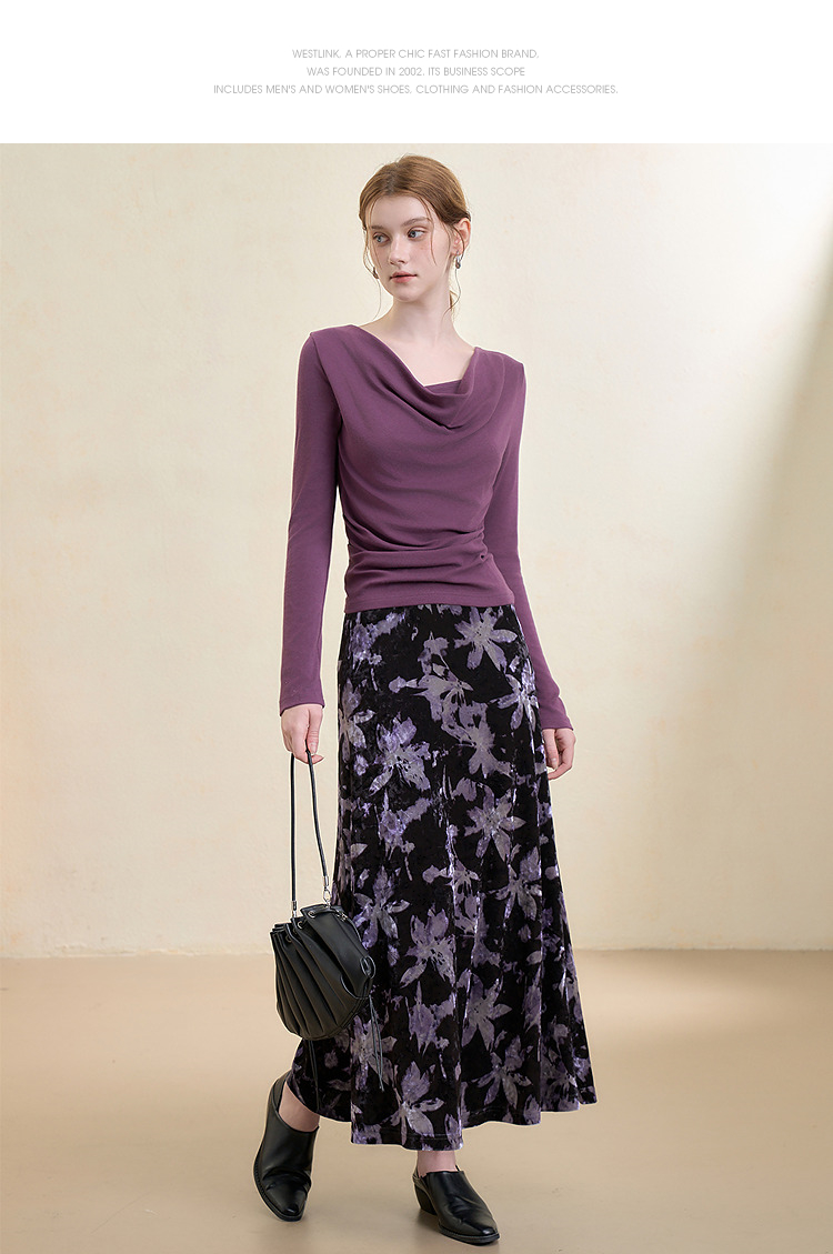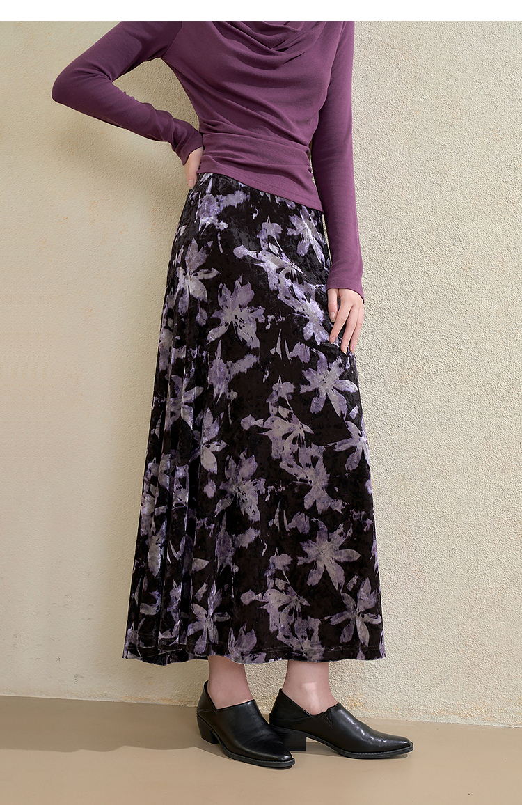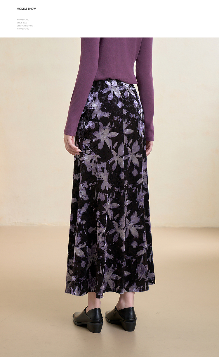 西遇气质缎面碎花半身裙女秋季新款高质感高腰显瘦A字中长裙V3455243