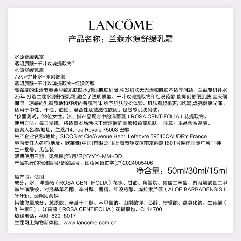 兰蔻 水源舒缓乳霜