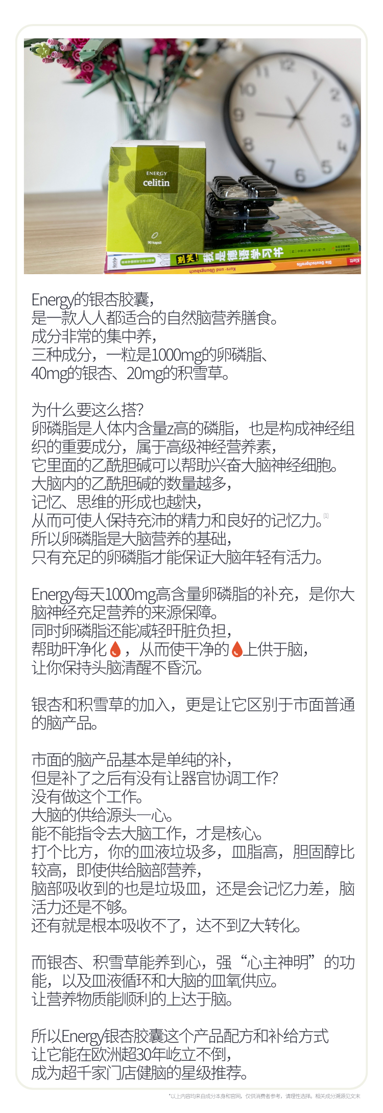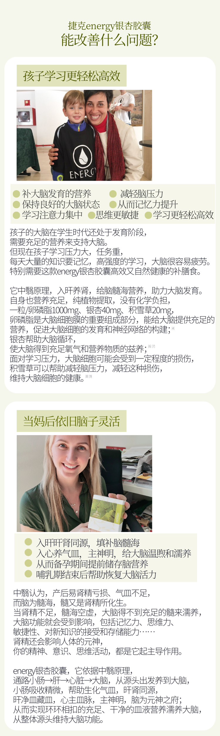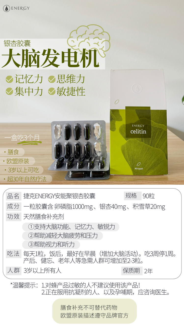 【畅通脑经络 补充脑营养 根源养脑】银杏胶囊90粒 捷克 ENERGY安能聚