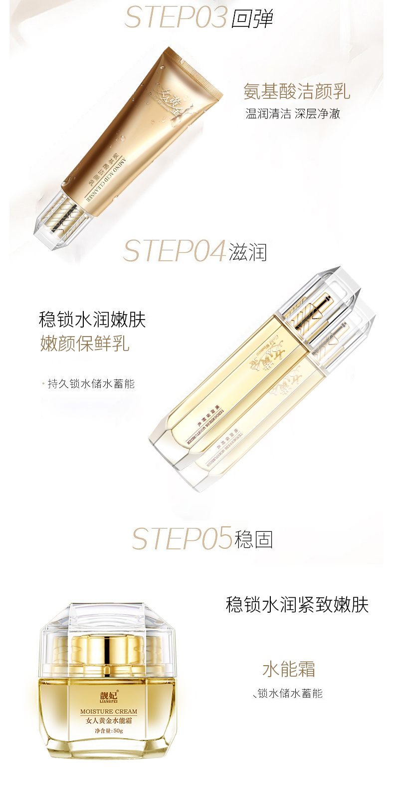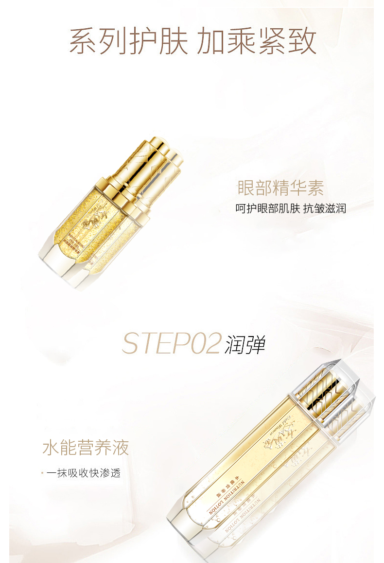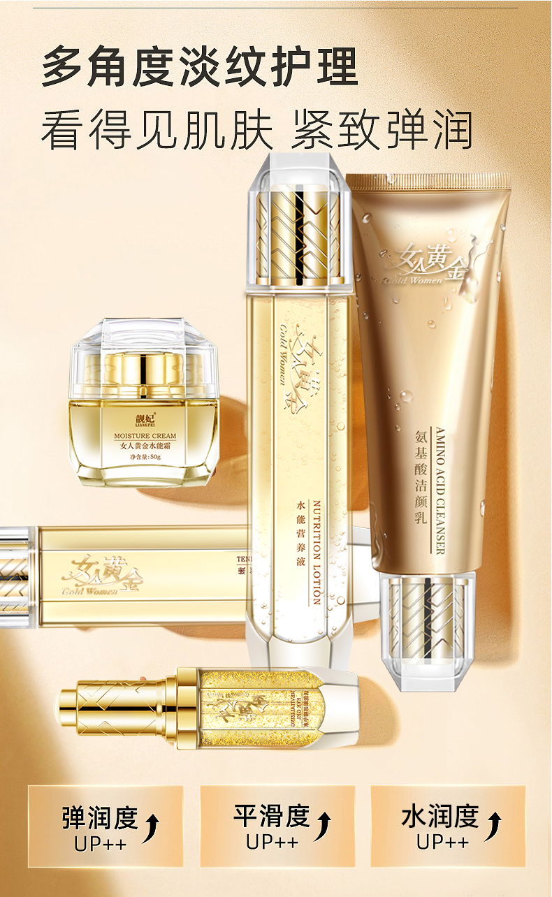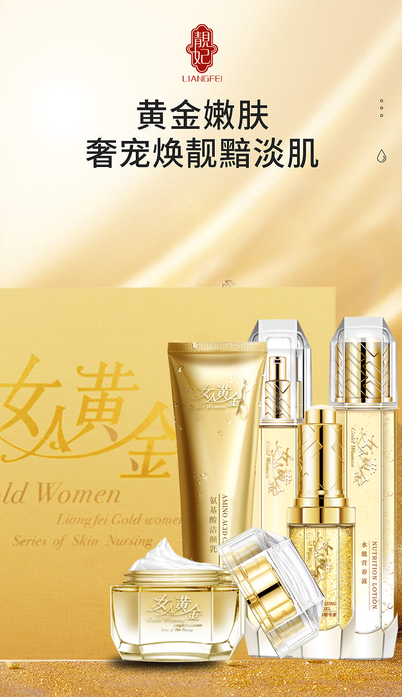 【自营】靓妃女人黄金深层清洁五件套 氨基酸洁颜乳 嫩颜保鲜乳 水能营养液 黄金水能霜 能眼部精华素10.