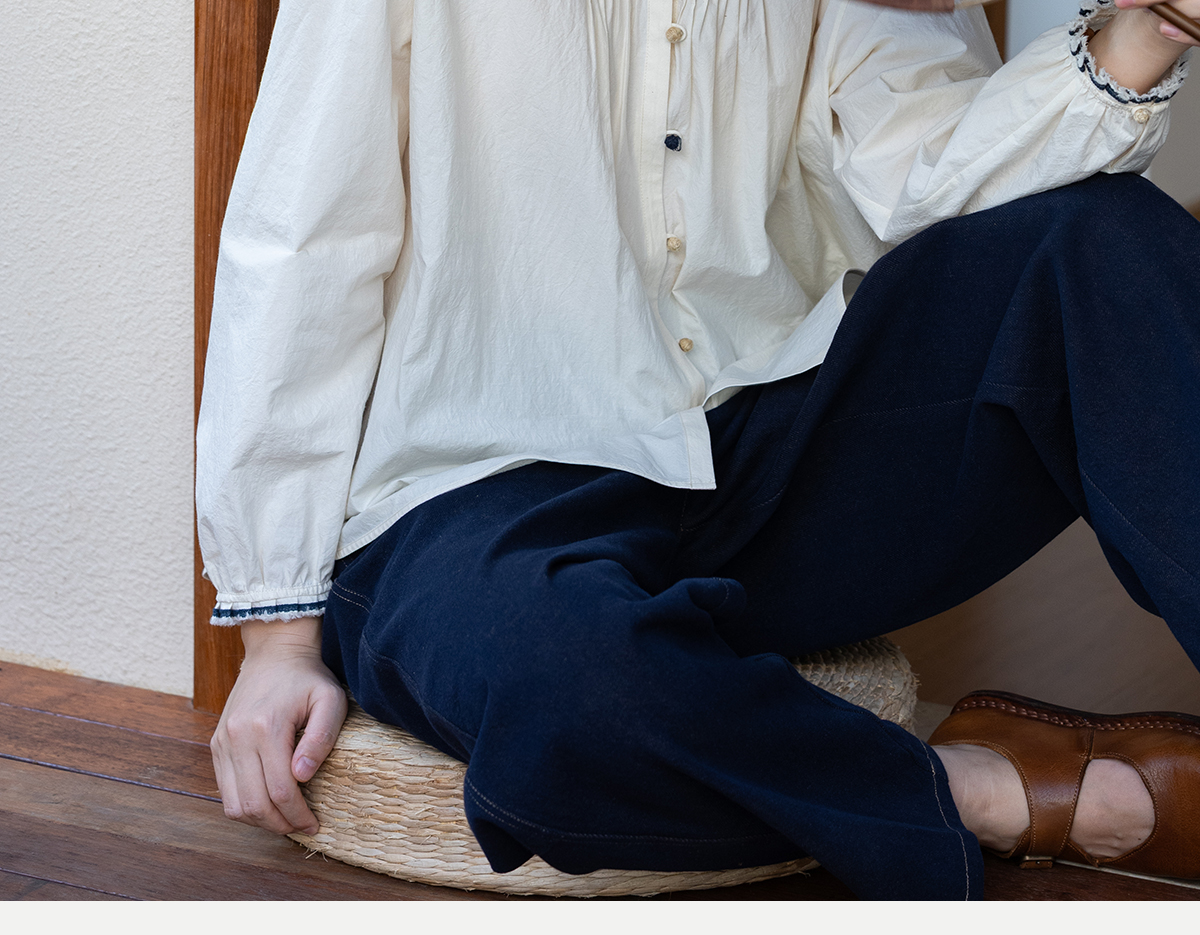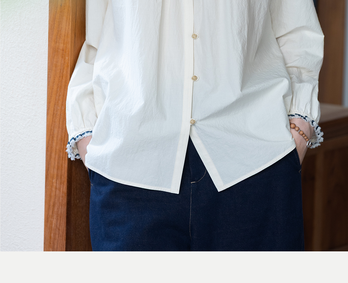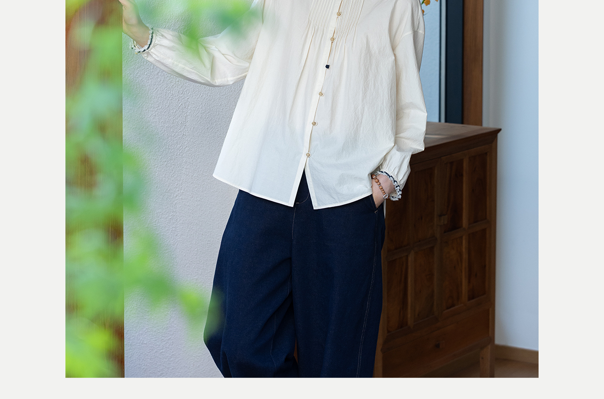 牧衣游原创 打条汉麻棉衬衫新品通勤轻薄白色休闲百搭衬衣 未眠夜