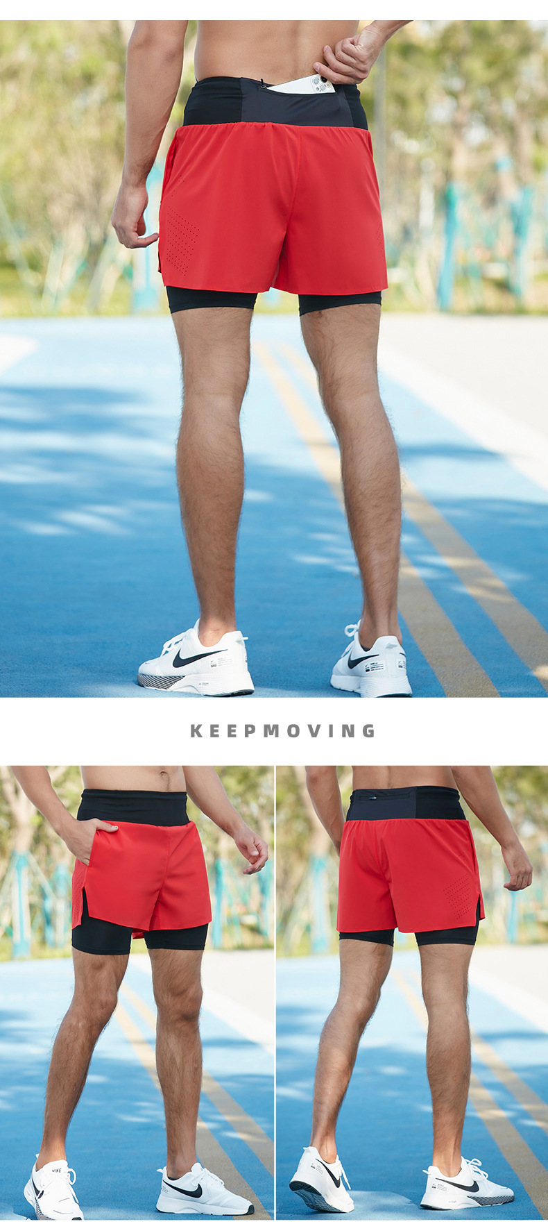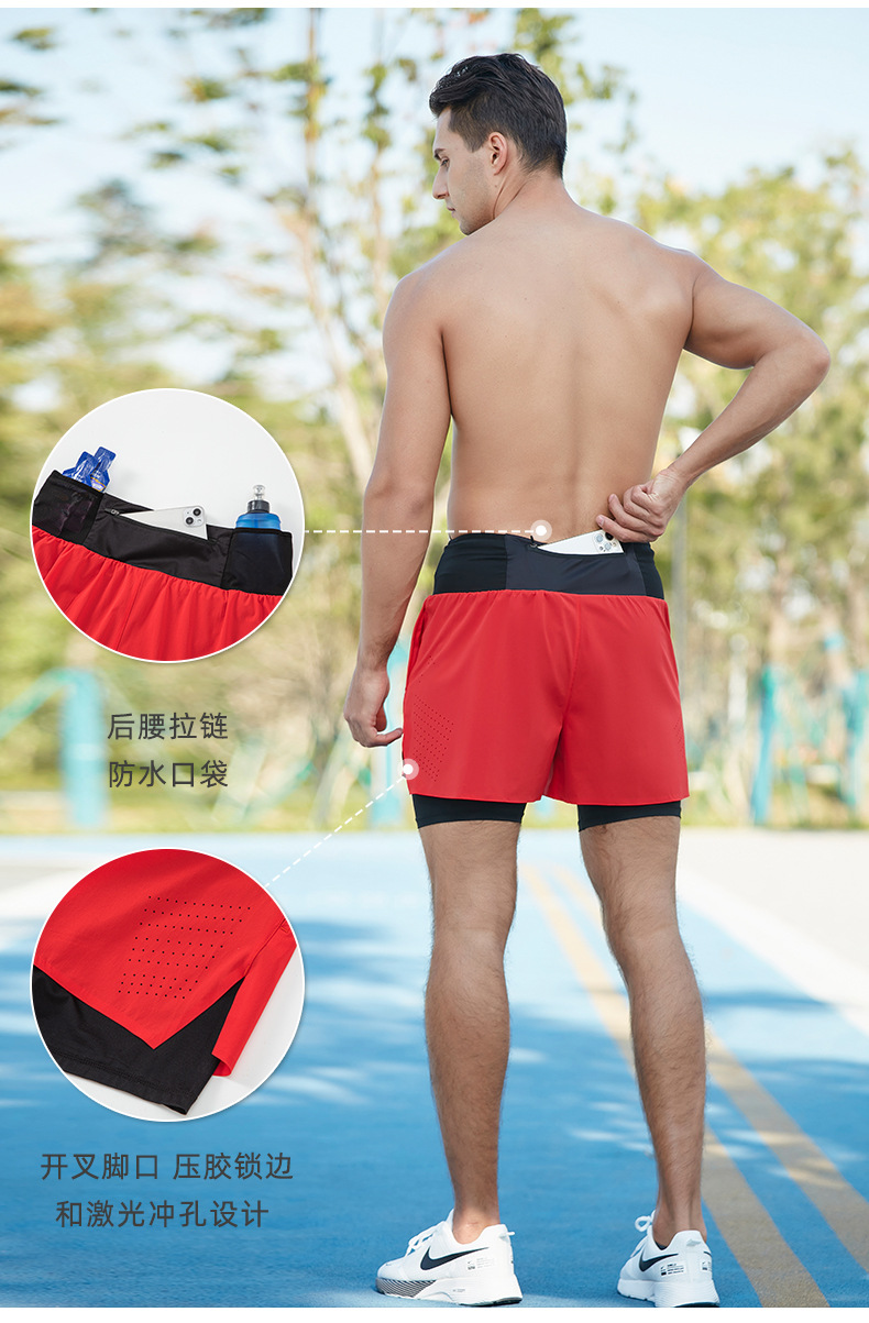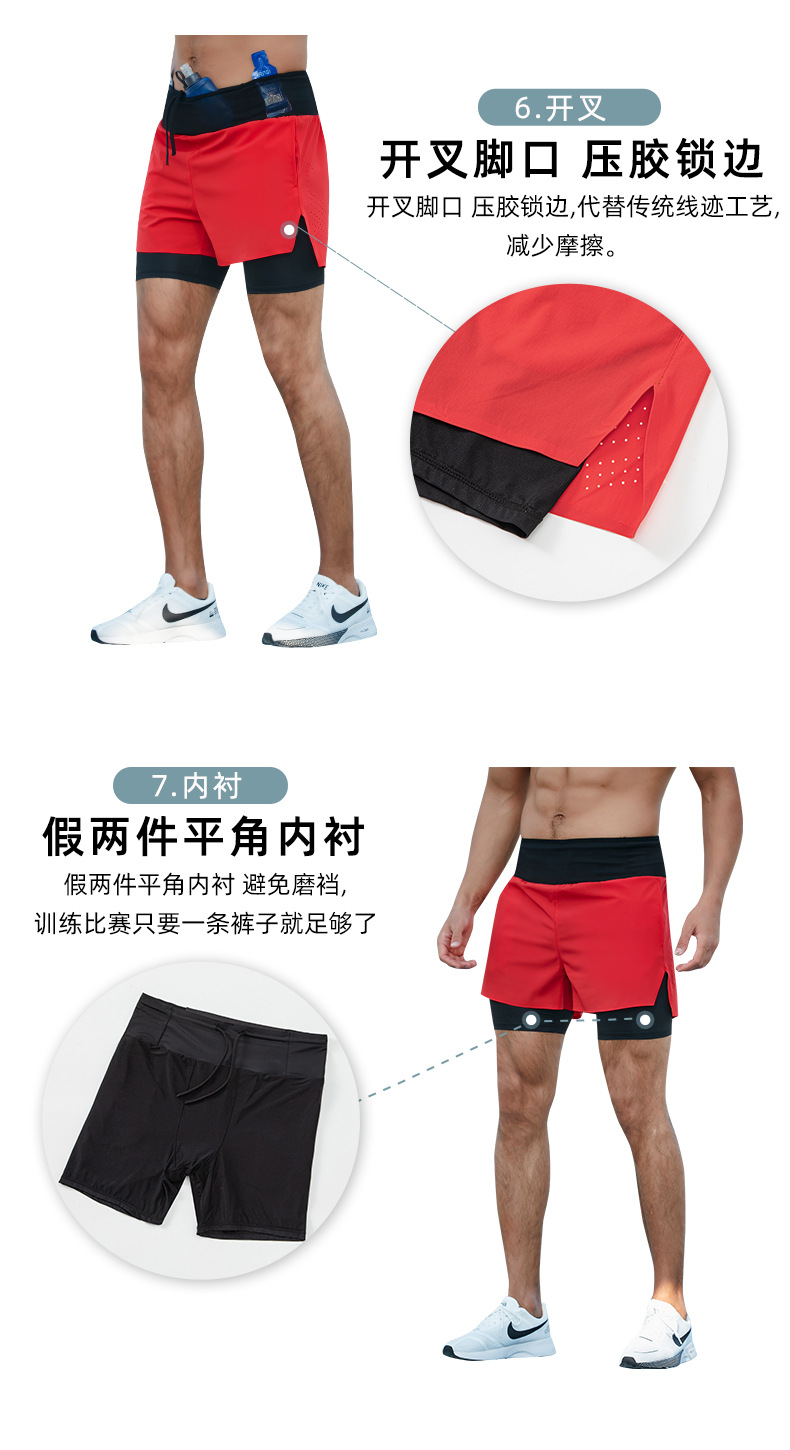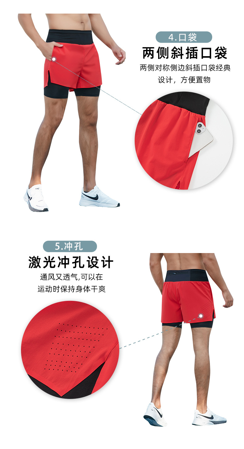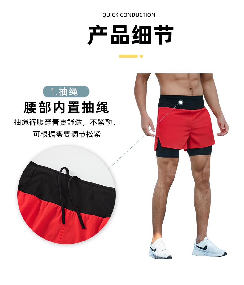 跑步短裤腰部抽绳多口袋腰包侧兜带内衬