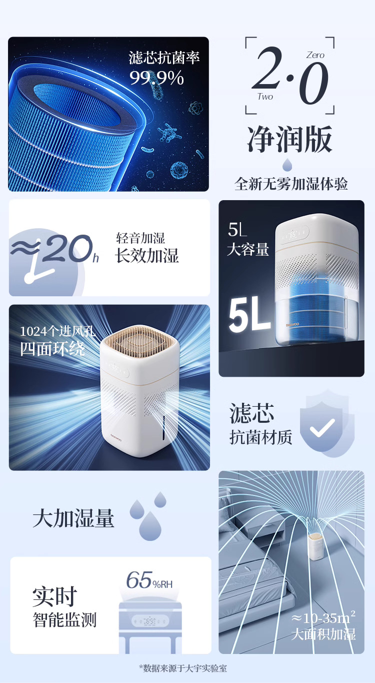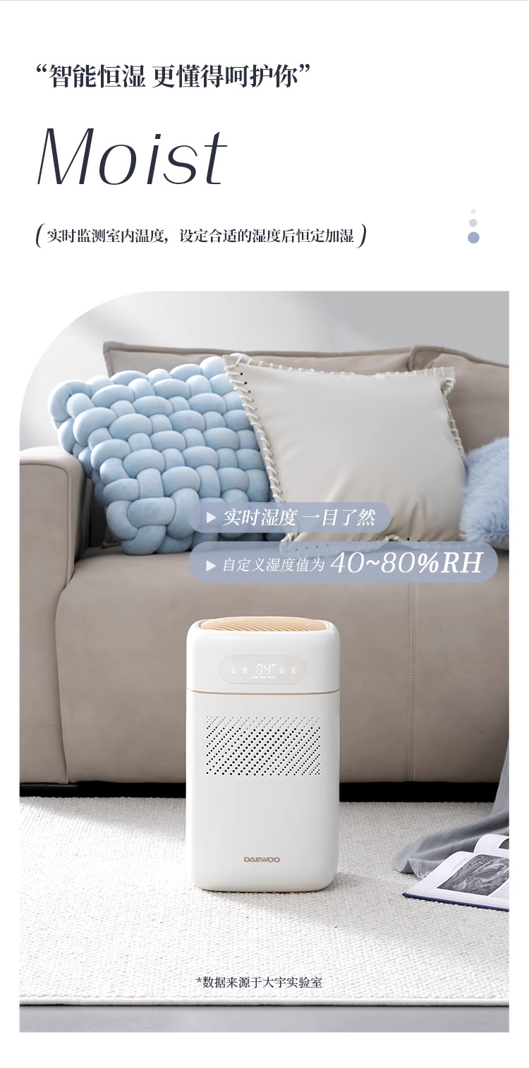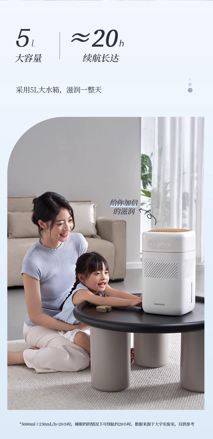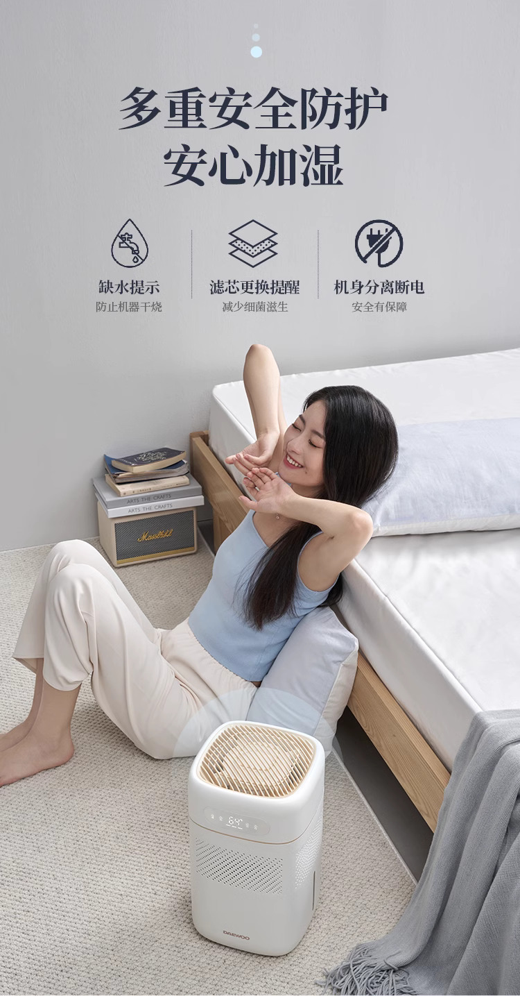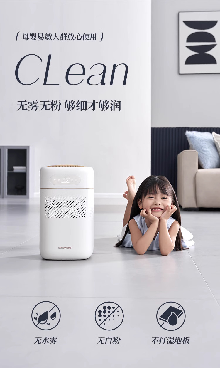 大宇无雾加湿器卧室孕妇婴儿家用桌面冷蒸发式空气加湿器