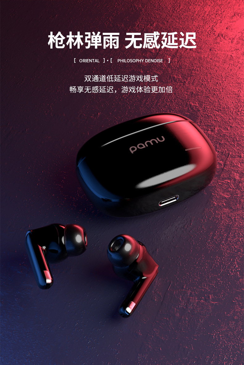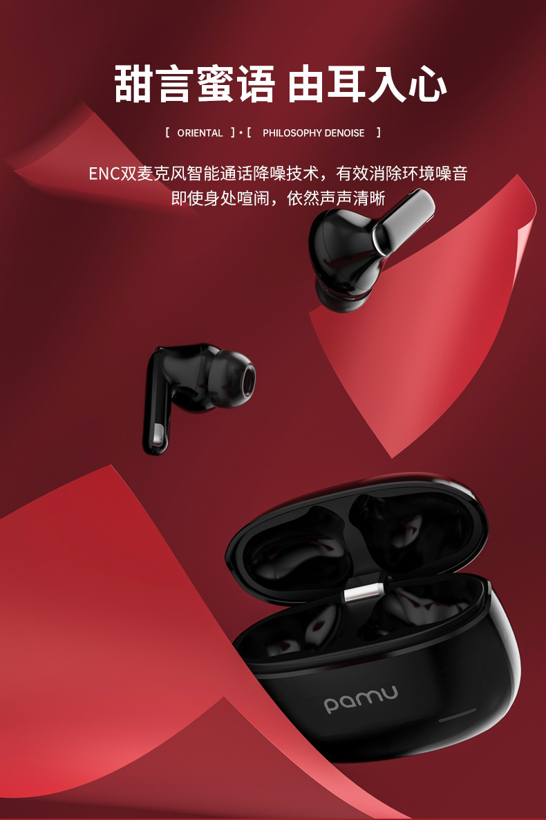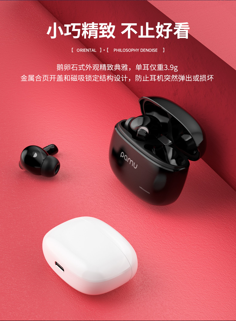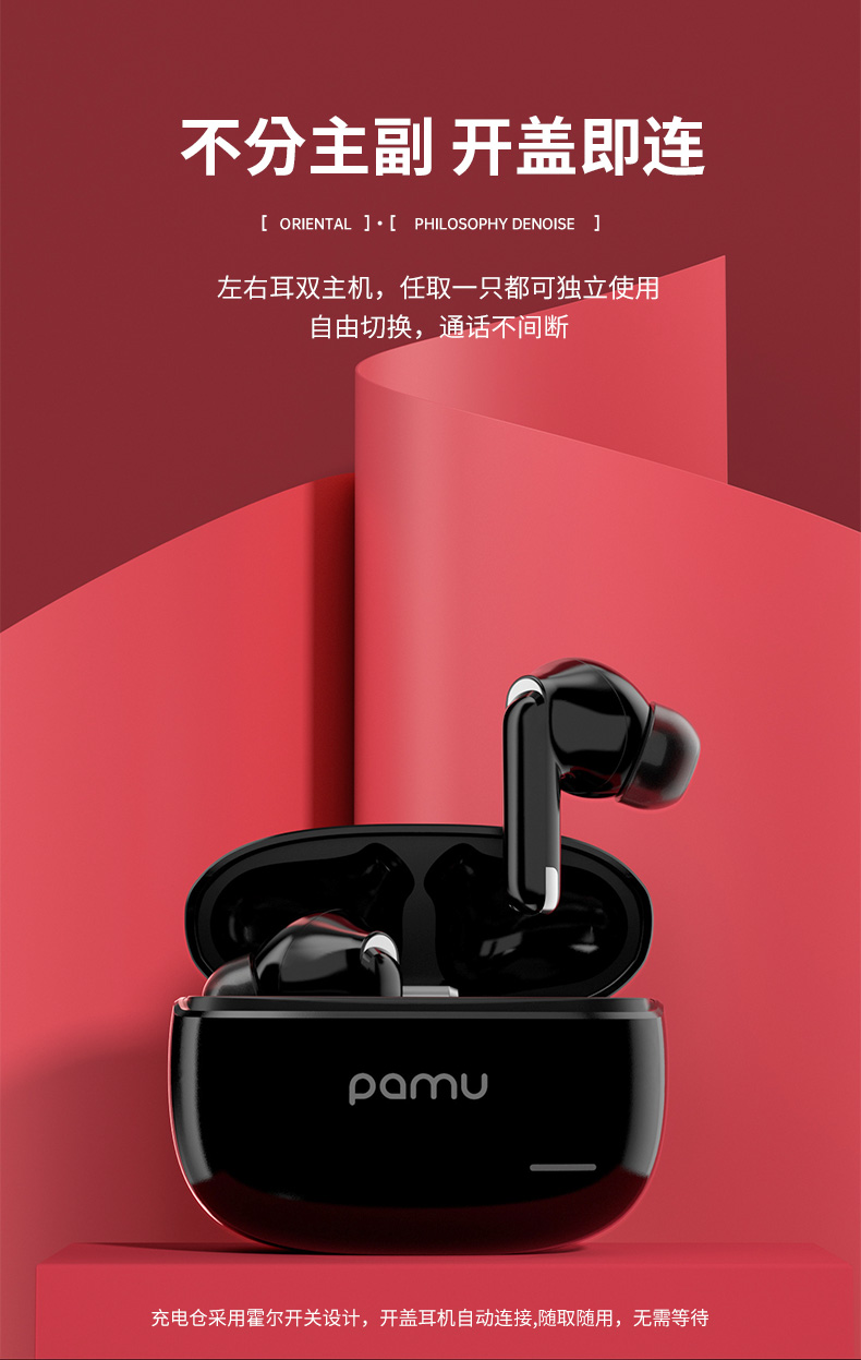 Pamu S29真无线降噪耳机 | 主动宽频降噪技术,通话降噪;开盖即连双主机,单耳模式,双耳模式使用,极轻人耳工学设计,舒适佩戴