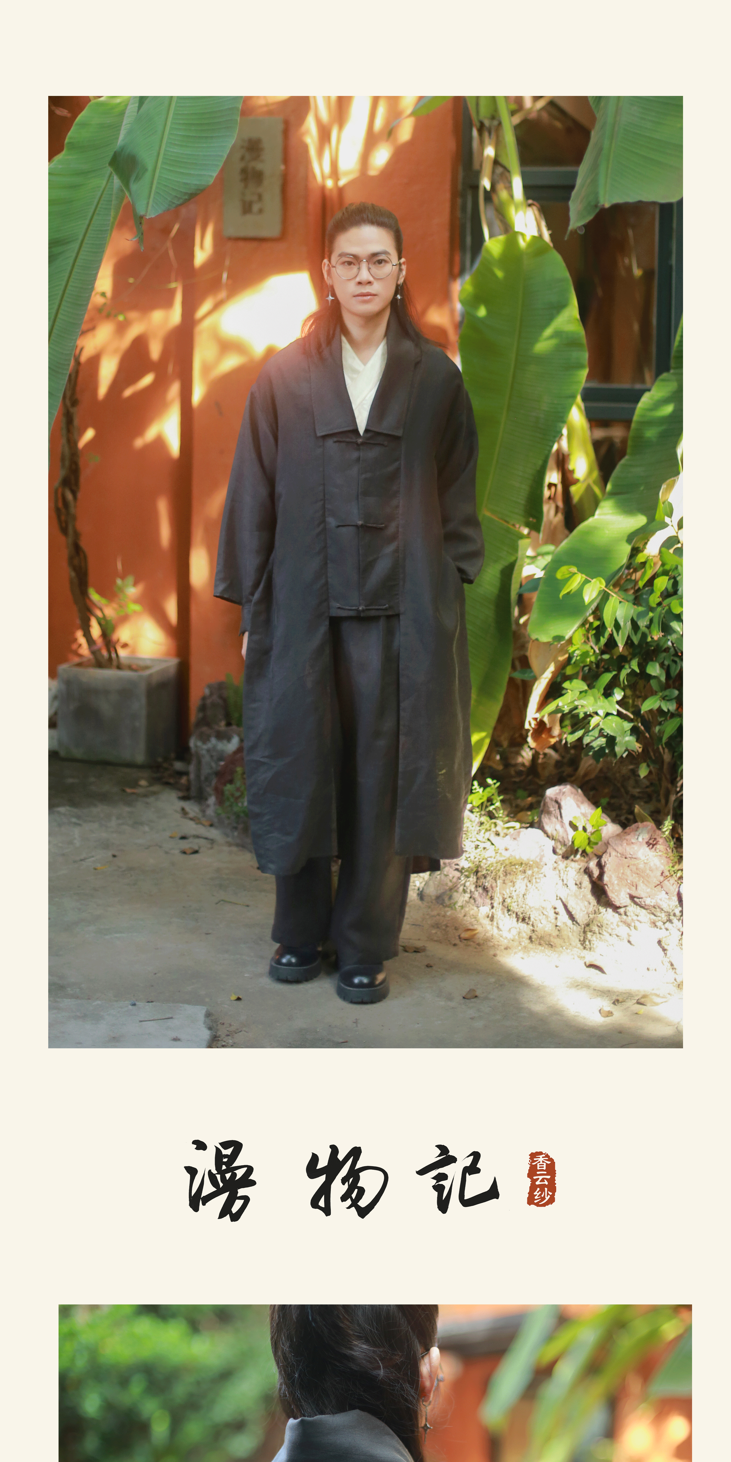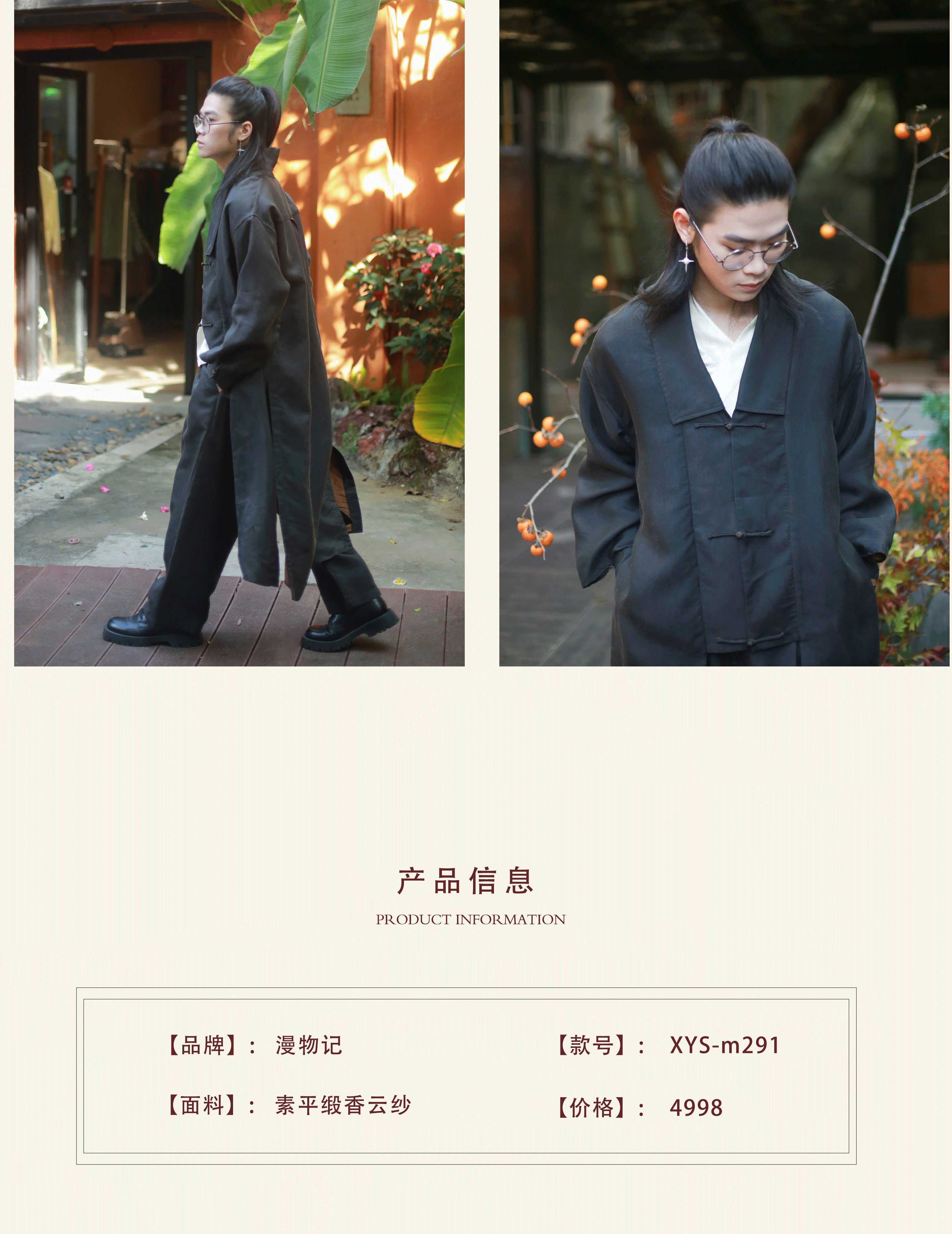 漫物记素平缎香云纱三盘扣大衣外套xys-M291