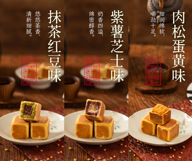 【口味】红豆抹茶、紫薯芝士、肉松蛋黄