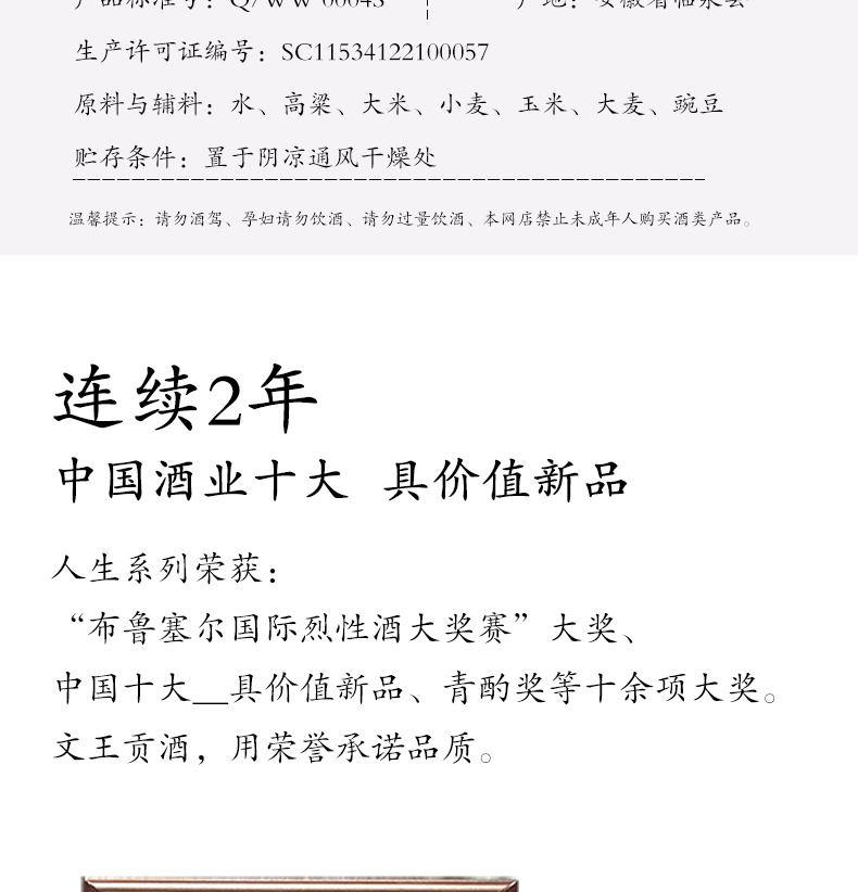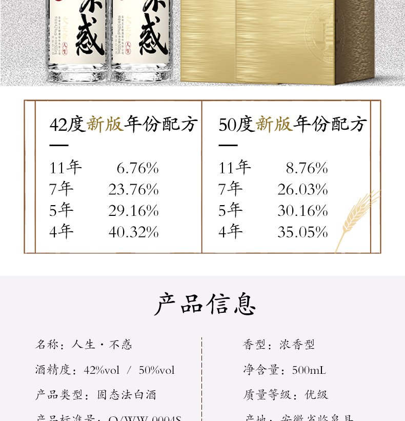 文王贡酒 42度/50度人生不惑 文王不惑系列 真年份白酒 安徽特产