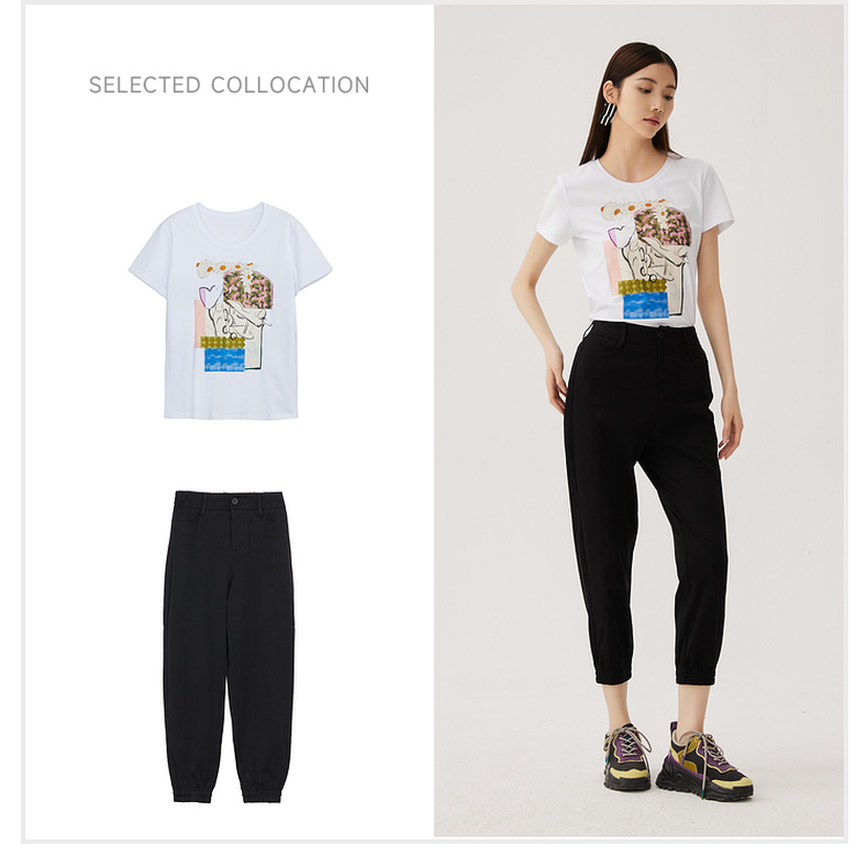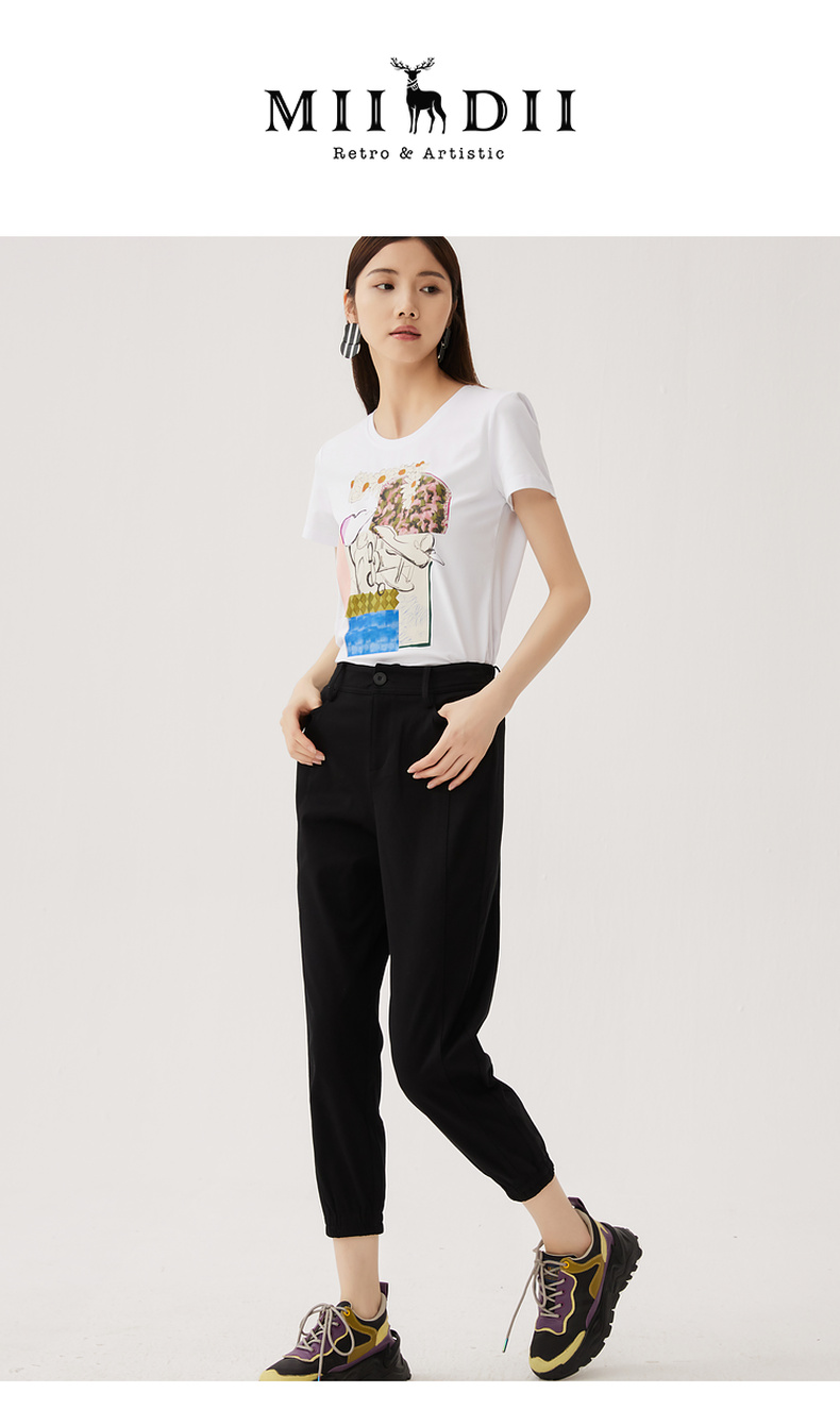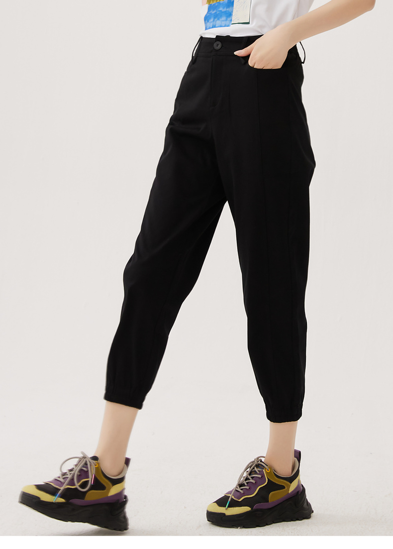 谜底休闲裤女2024秋款百搭运动感束脚宽松萝卜裤九分裤247MK5061
