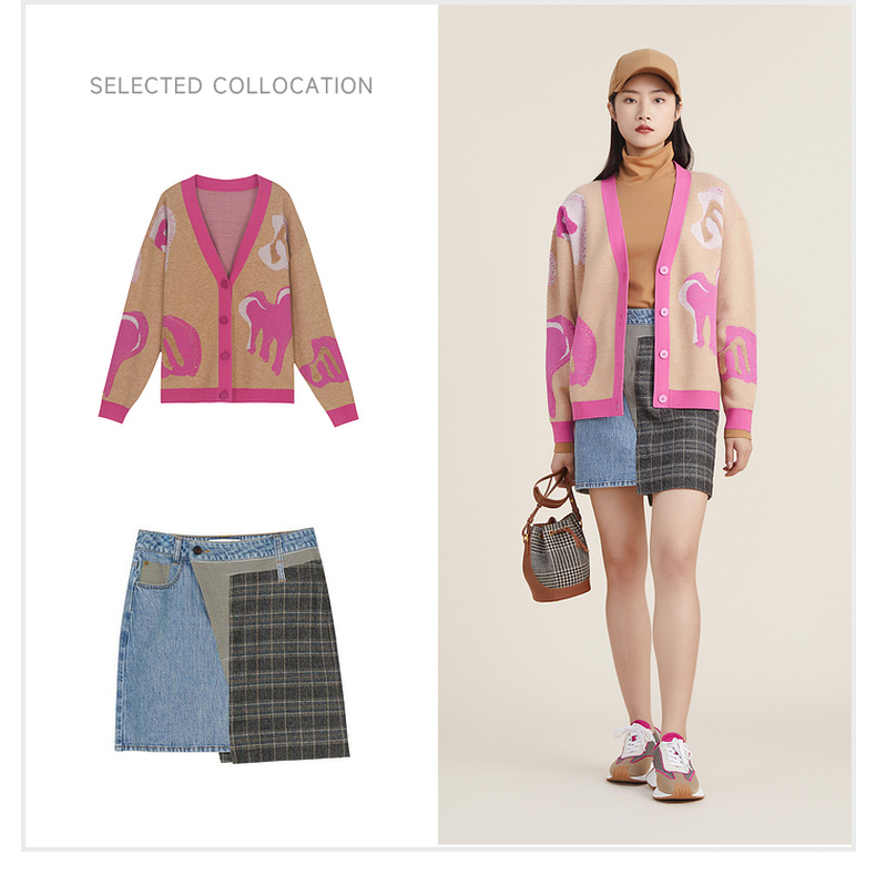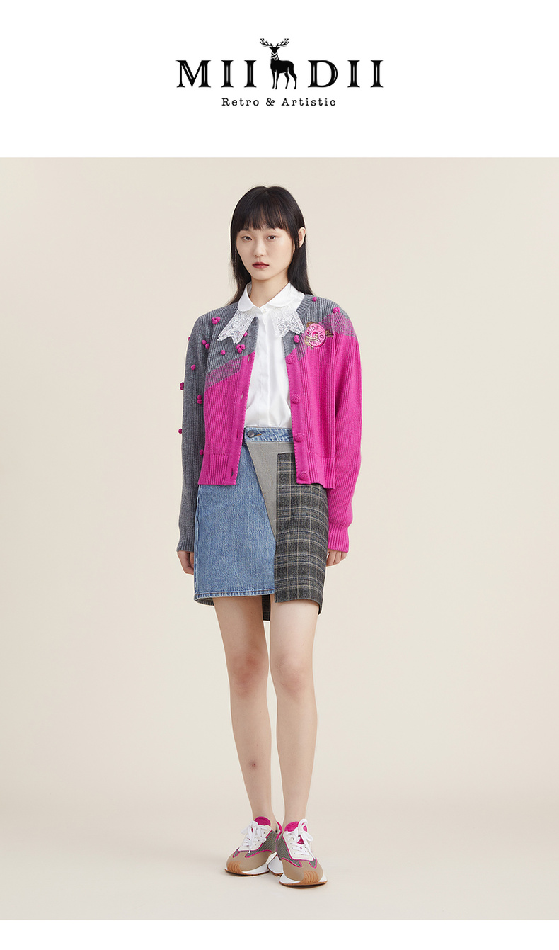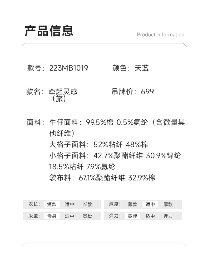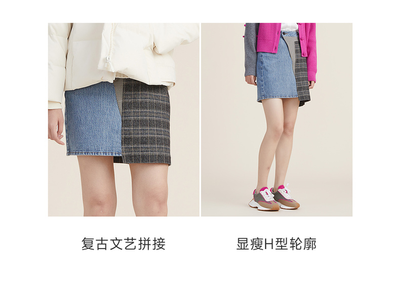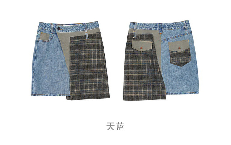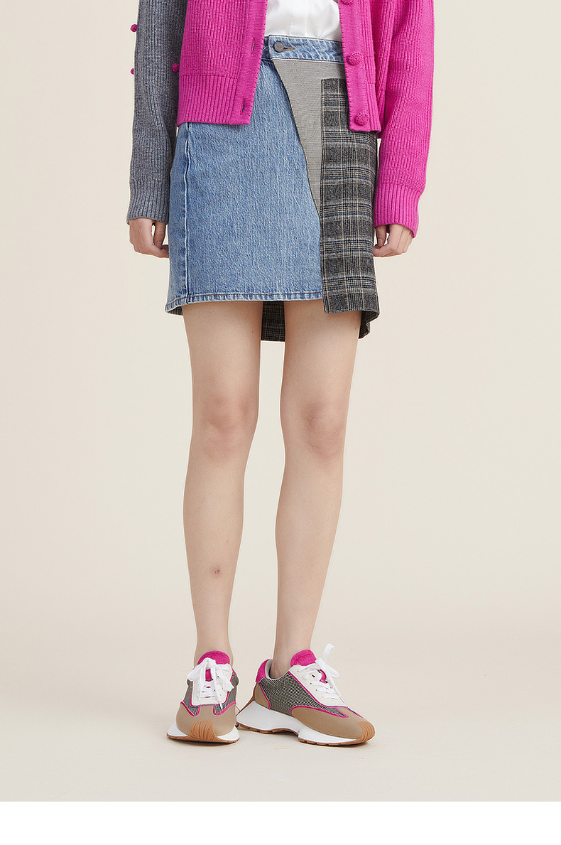 谜底半身裙女2022秋新款复古文艺高腰拼接感A型牛仔半裙223MB1019