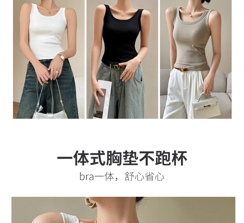 纯棉U型美打底背吊带小背心女士内搭带胸垫一体外穿针织辣妹上衣