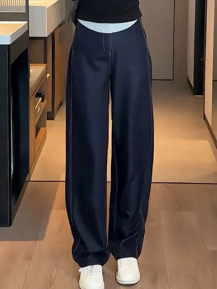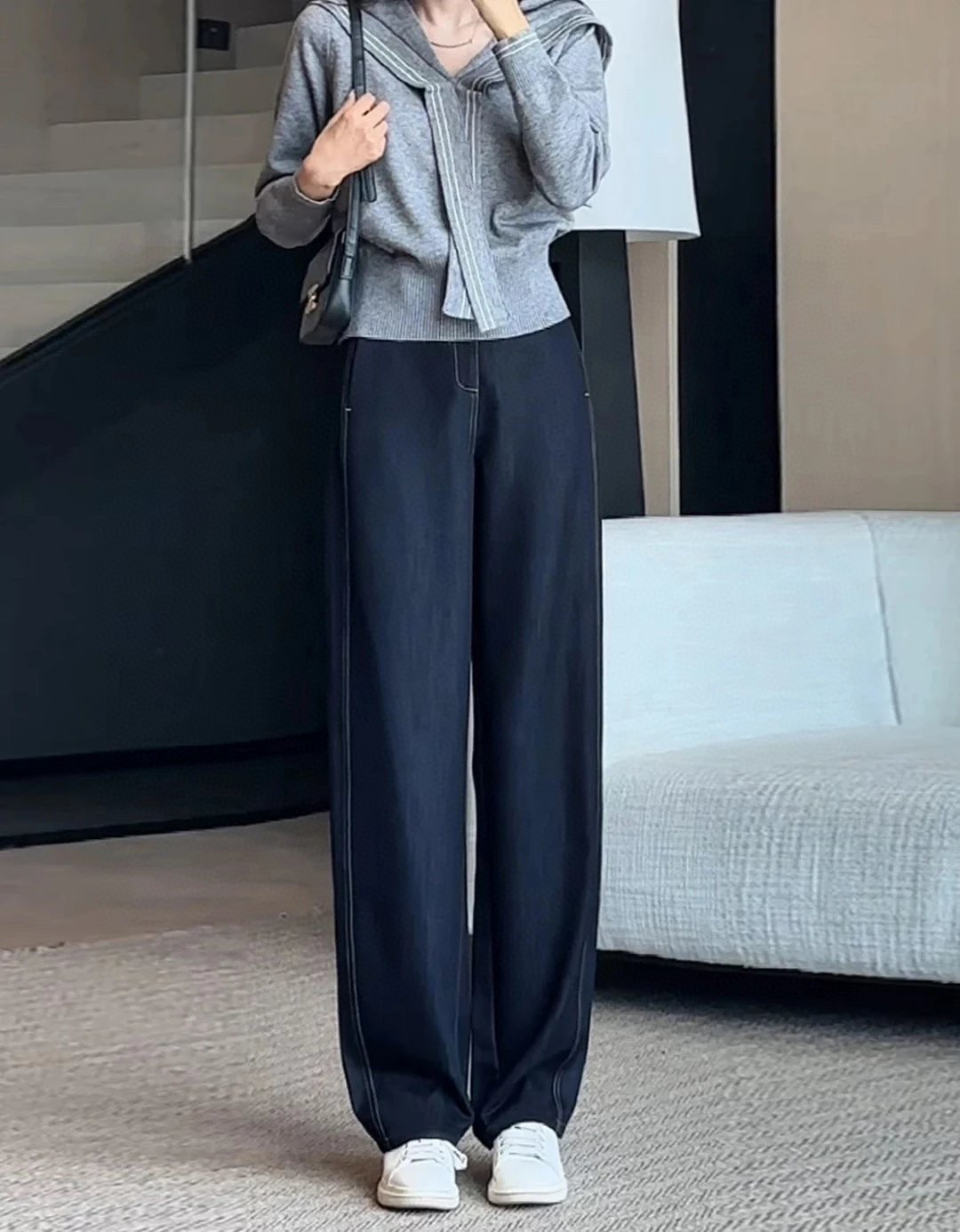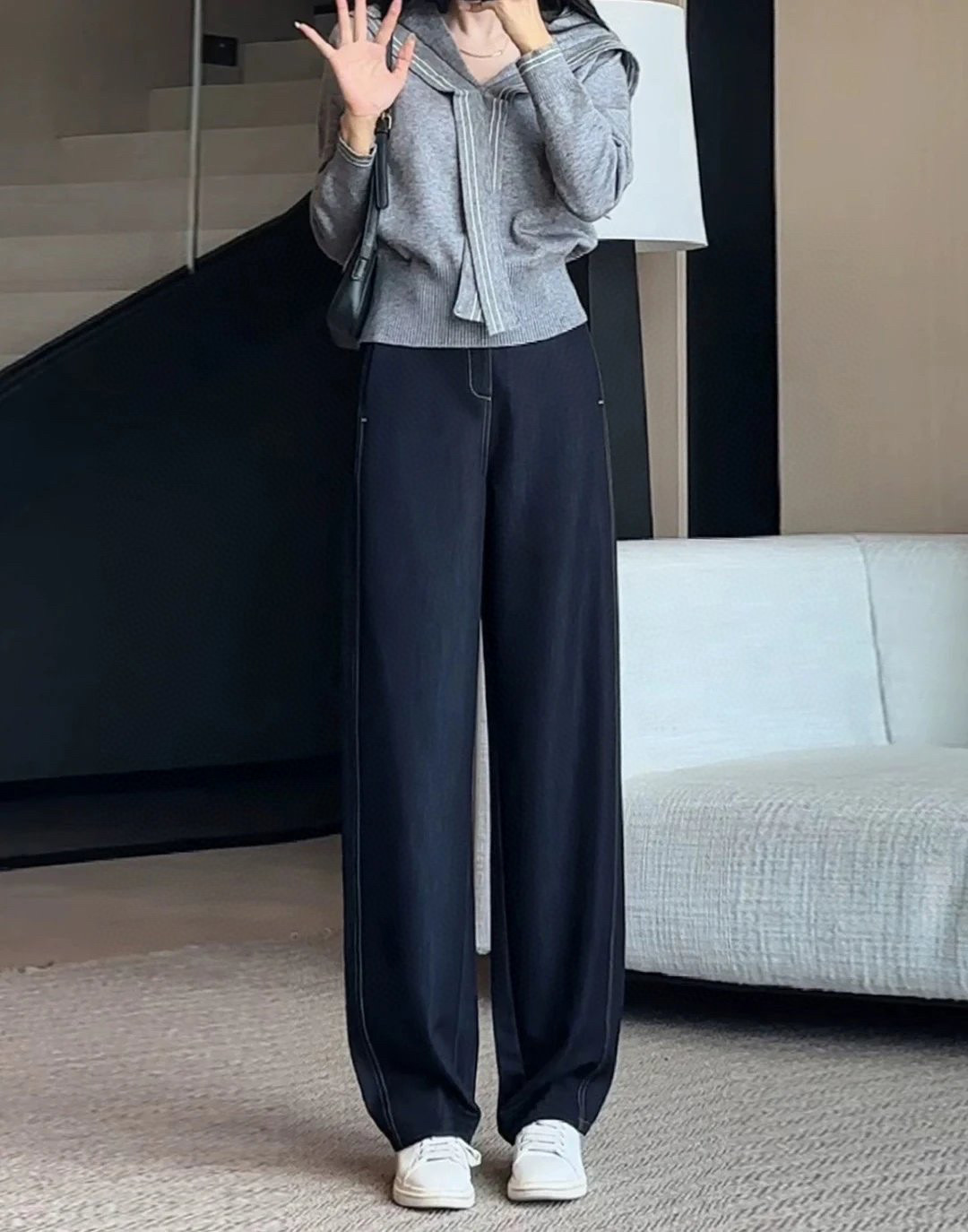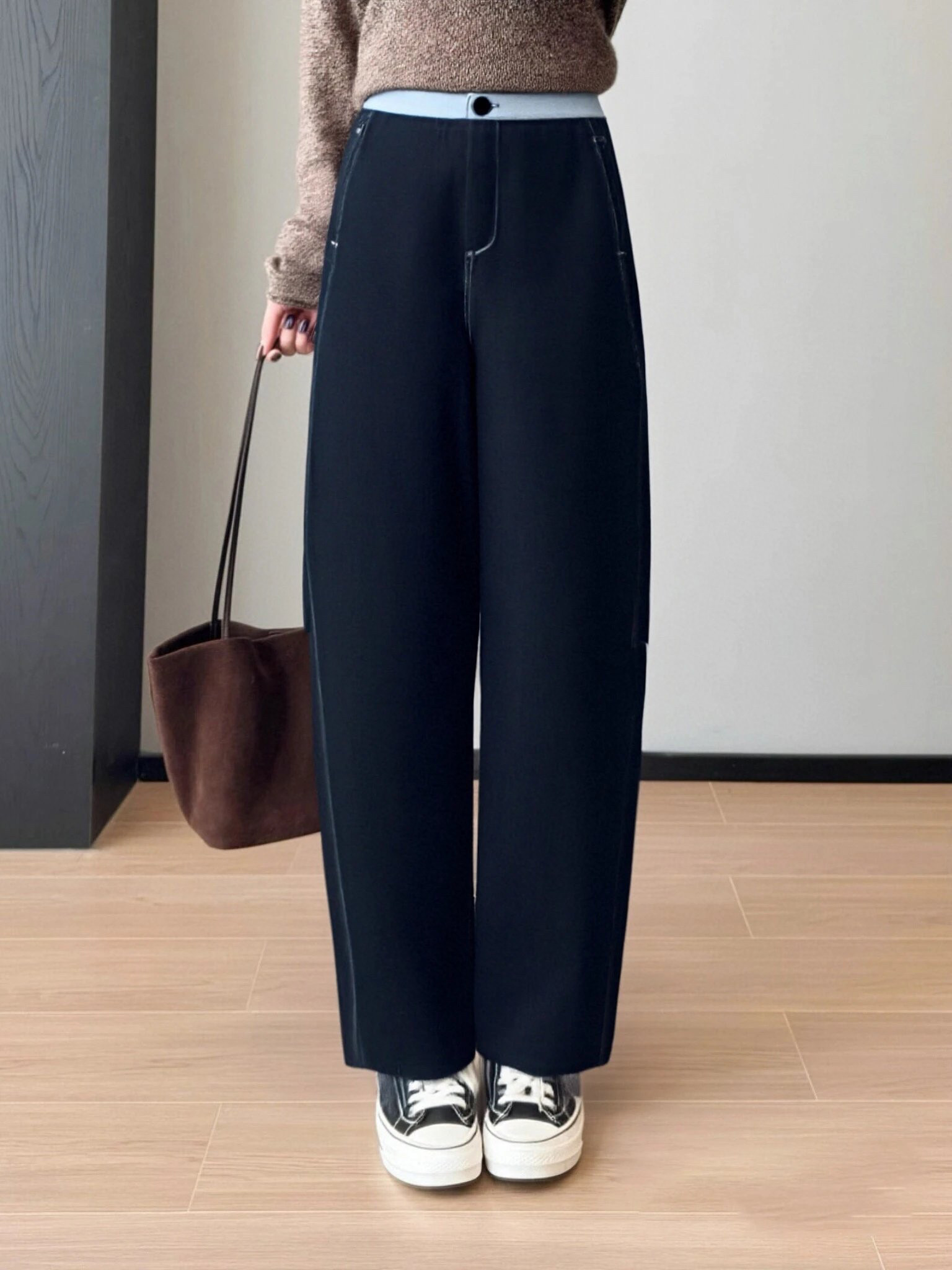 💰128元包邮, 【3164】TH同款 加绒弯刀裤 水洗明线 自然垂坠弧度 修饰腿型 冬季加绒加厚款 双针撞色拼腰弯刀裤 基础款里的细节派!