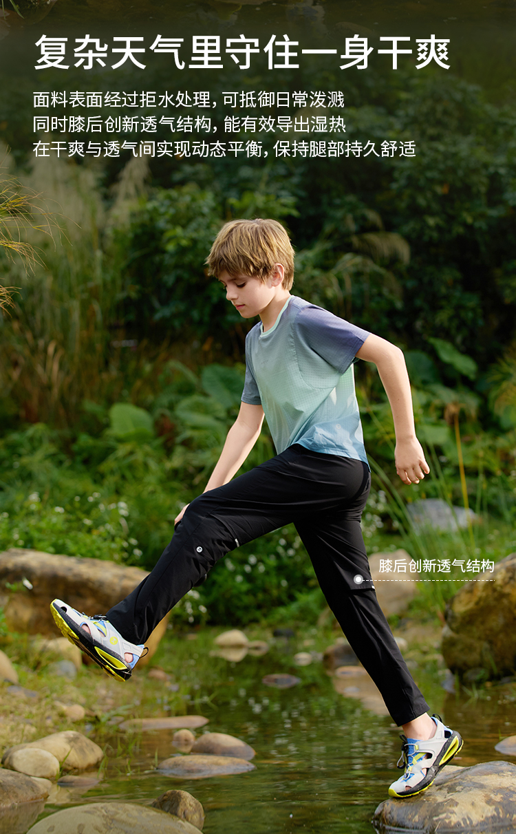 moodytiger儿童梭织长裤透气弹力夏季户外舒适62511303