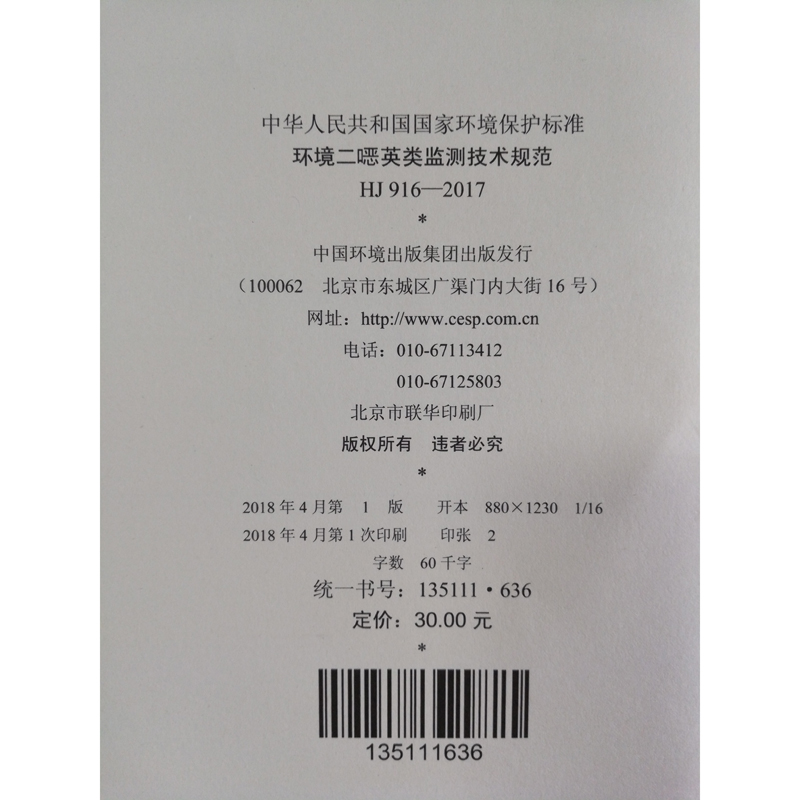 HJ 916—2017环境二噁英类监测技术规范 国家标准GB 环境保护 环境科学 135111636