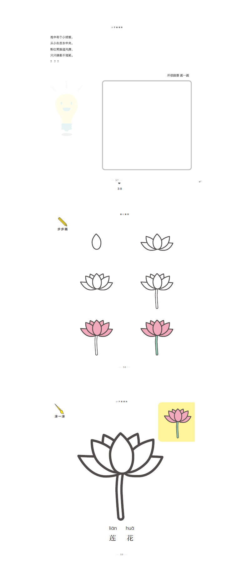 这是一本集儿歌、谜语、拼音、识字、涂色于一体的少儿美术启蒙书,不同于市场上多见的填色书,能给孩子