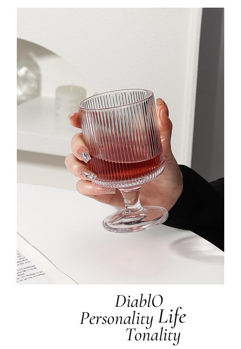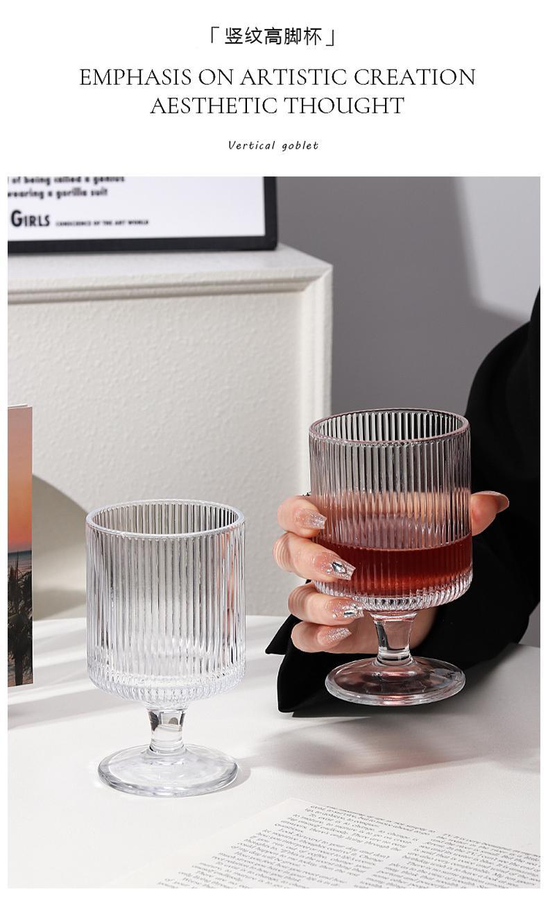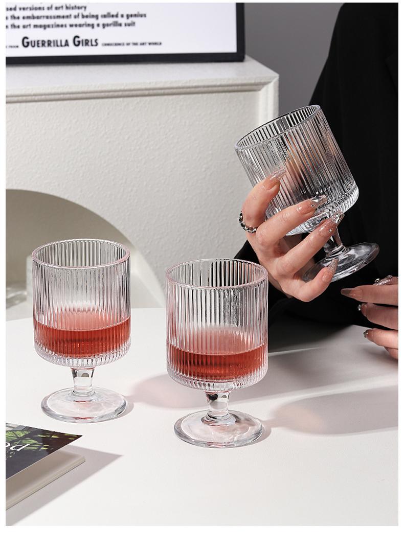「19.9到手3支!ins欧式杯」高颜值加厚竖条纹玻璃杯 果汁杯甜品高脚杯红酒杯洋酒餐饮用具
