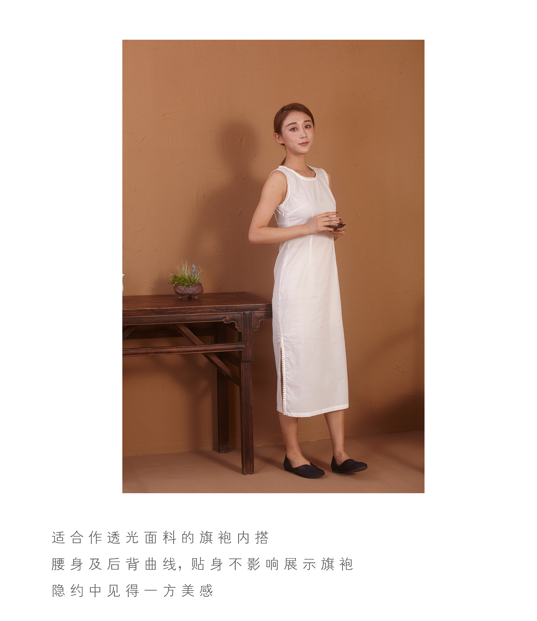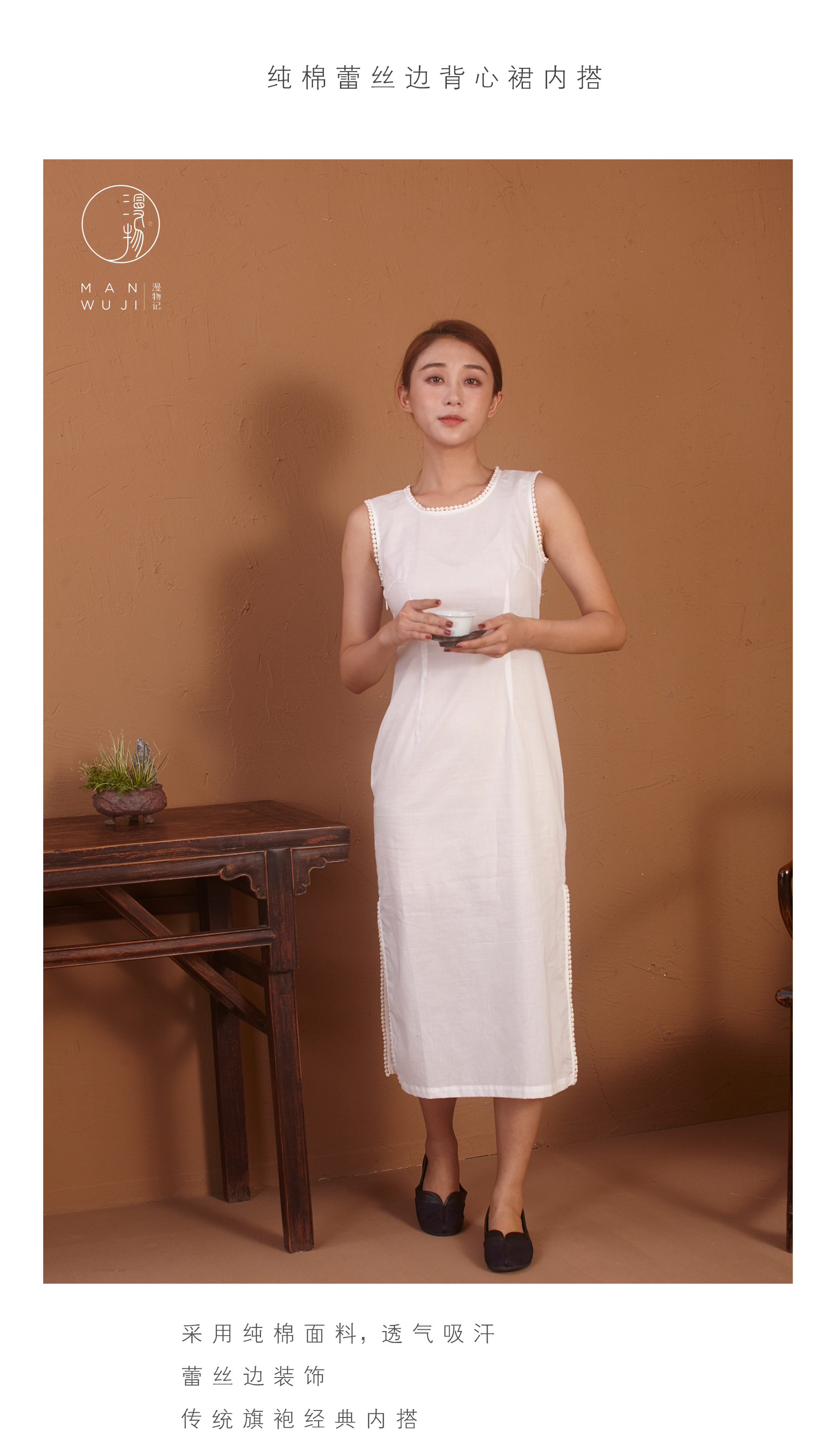 【漫物记】纯棉蕾丝边背心裙旗袍内搭