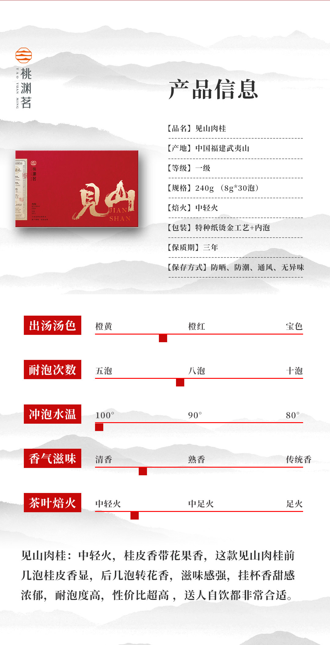 【花果香中清火】桃渊茗 见山 一级肉桂 武夷岩茶 240g/盒 礼盒装