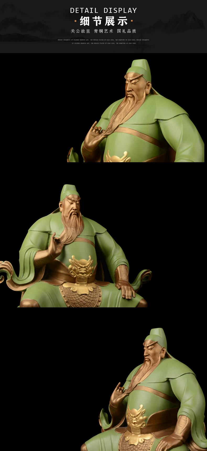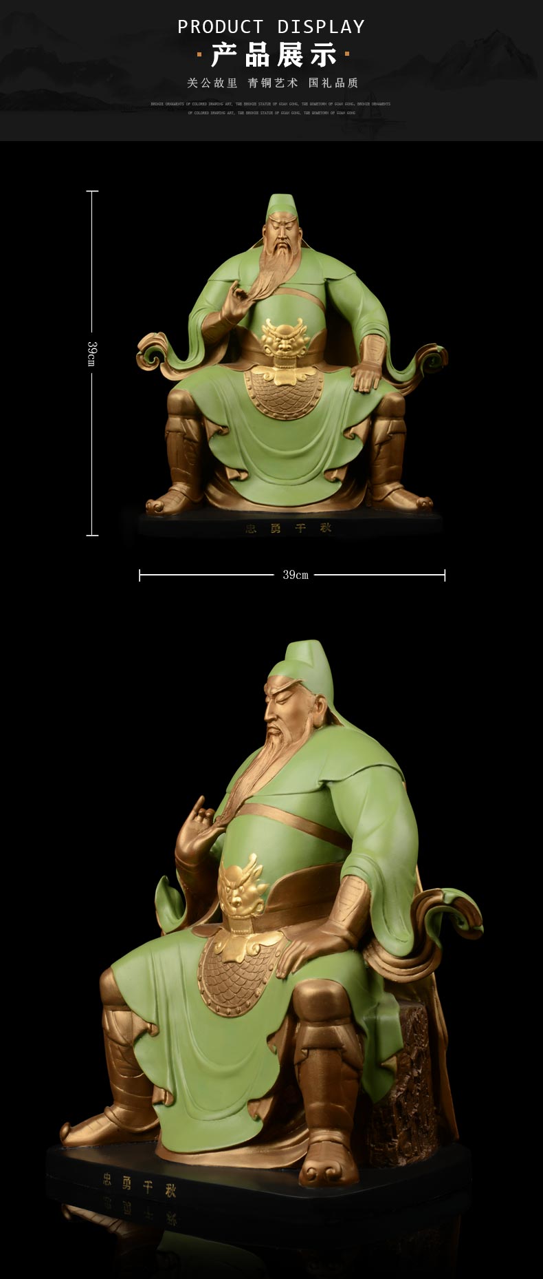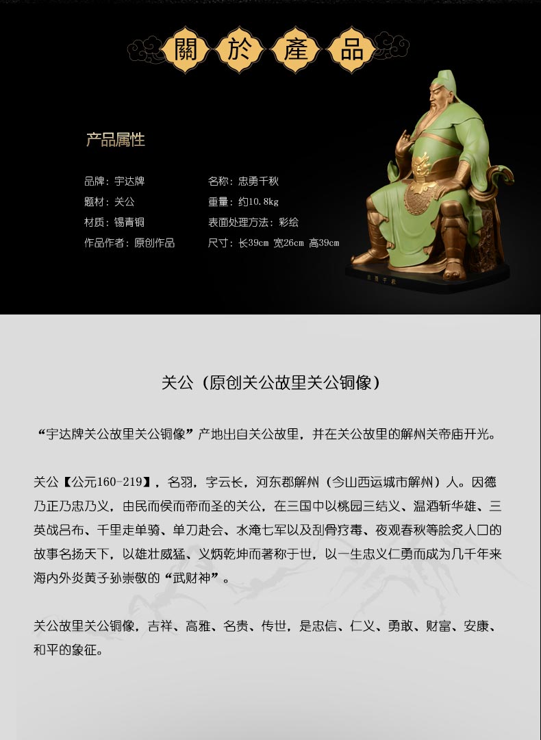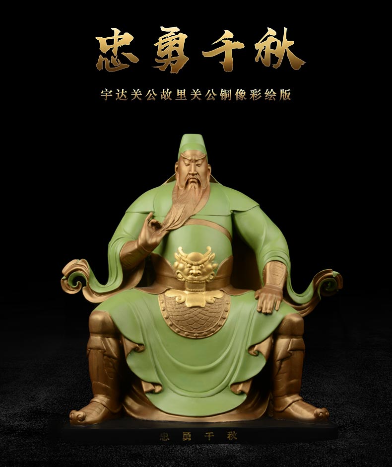 宇达青铜全铜摆件《忠勇千秋》彩绘 铜工艺品 关公 家居装饰摆件