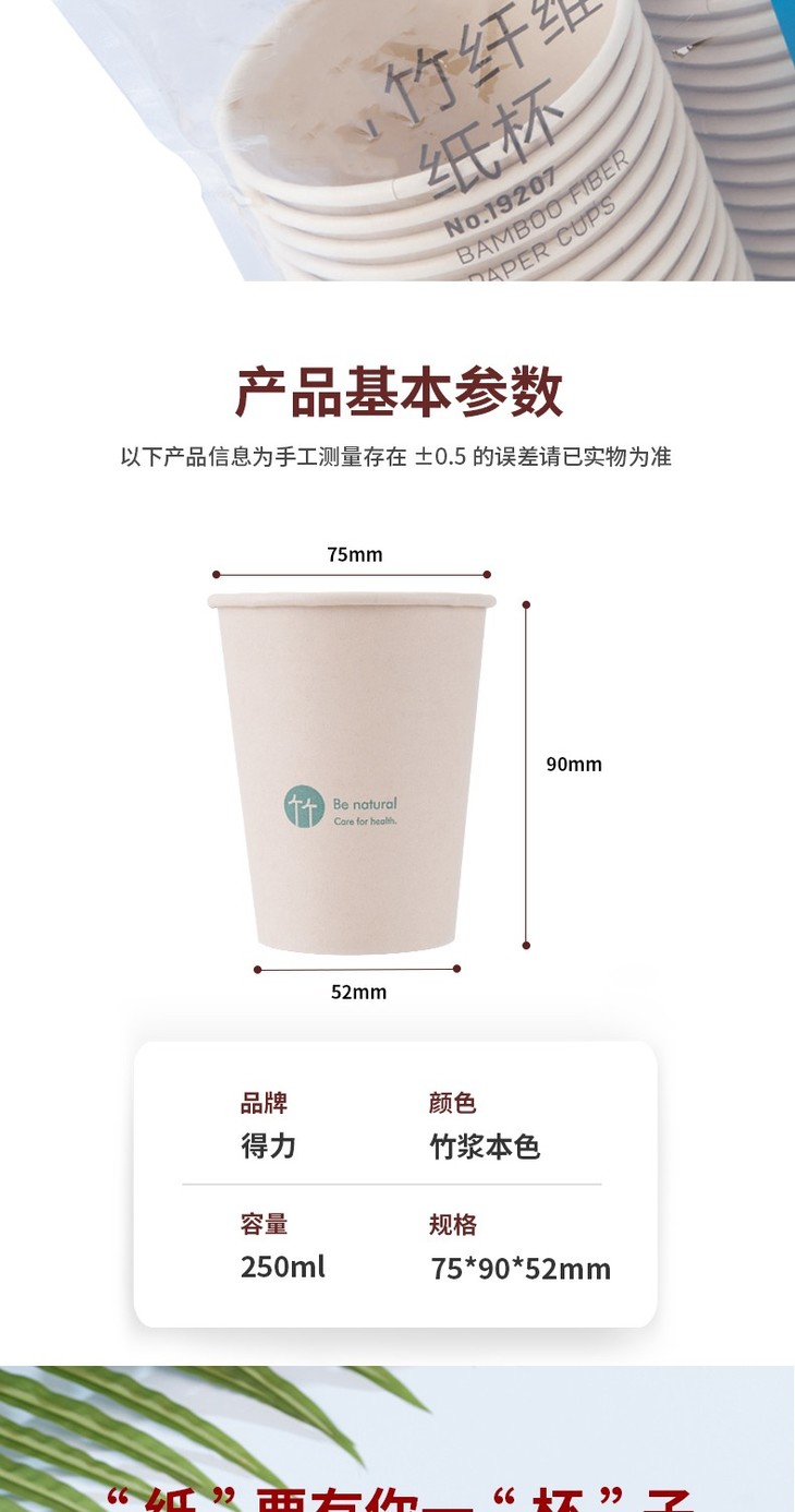 得力纸杯19200 250ml50只280g太阳纸