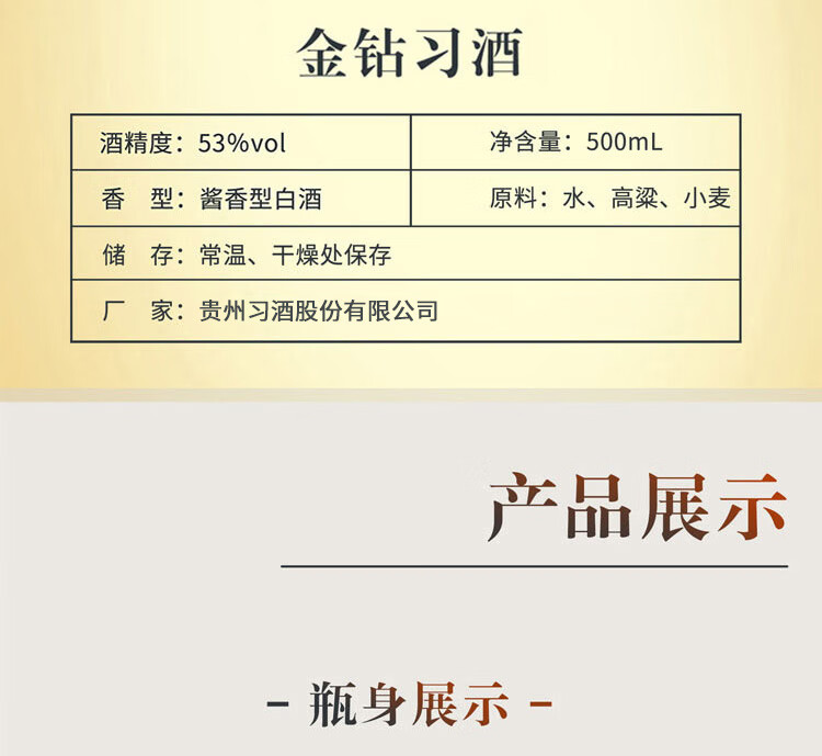 习酒 金钻习酒酱香型白酒53度500ml单瓶装 新老款随机发