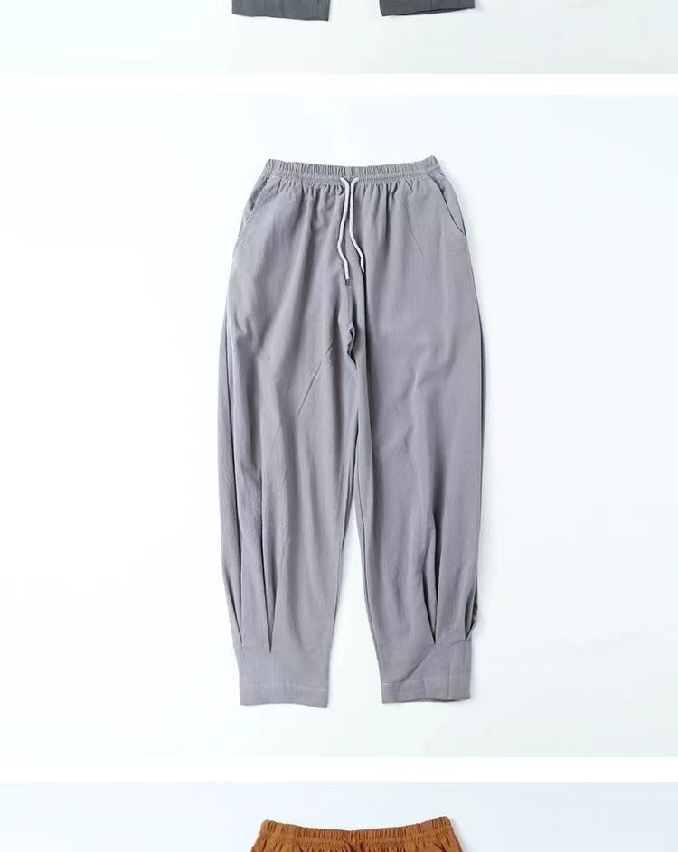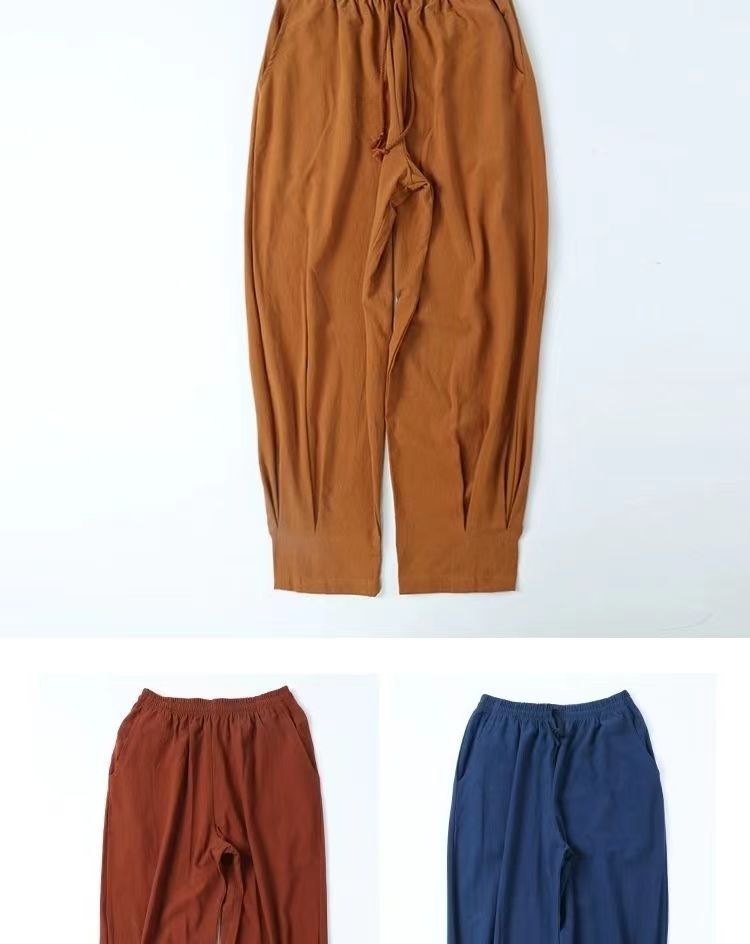 家居收脚裤免绑腿裤中国风晨练阔腿裤(不加绒)