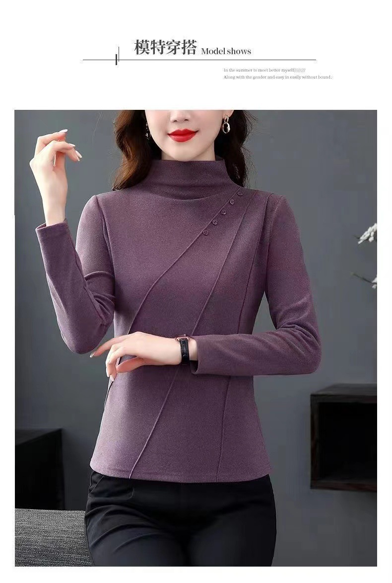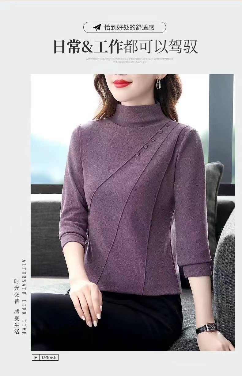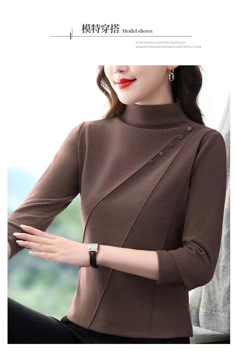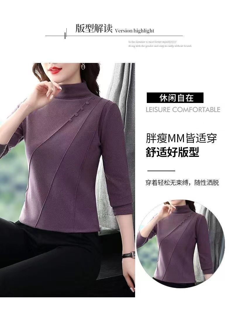【买一送一】半高领t恤妈妈装双面德绒加厚打底衫女秋冬装长袖T恤上衣修身显瘦打底衫