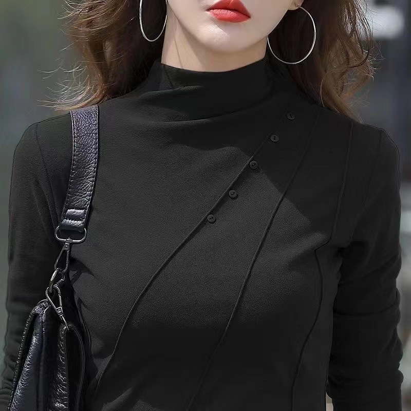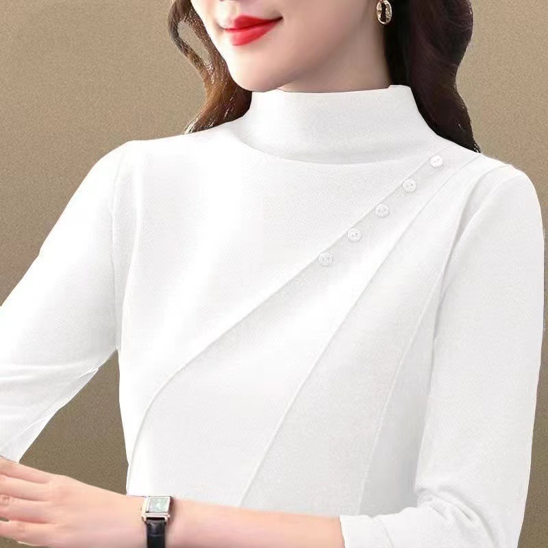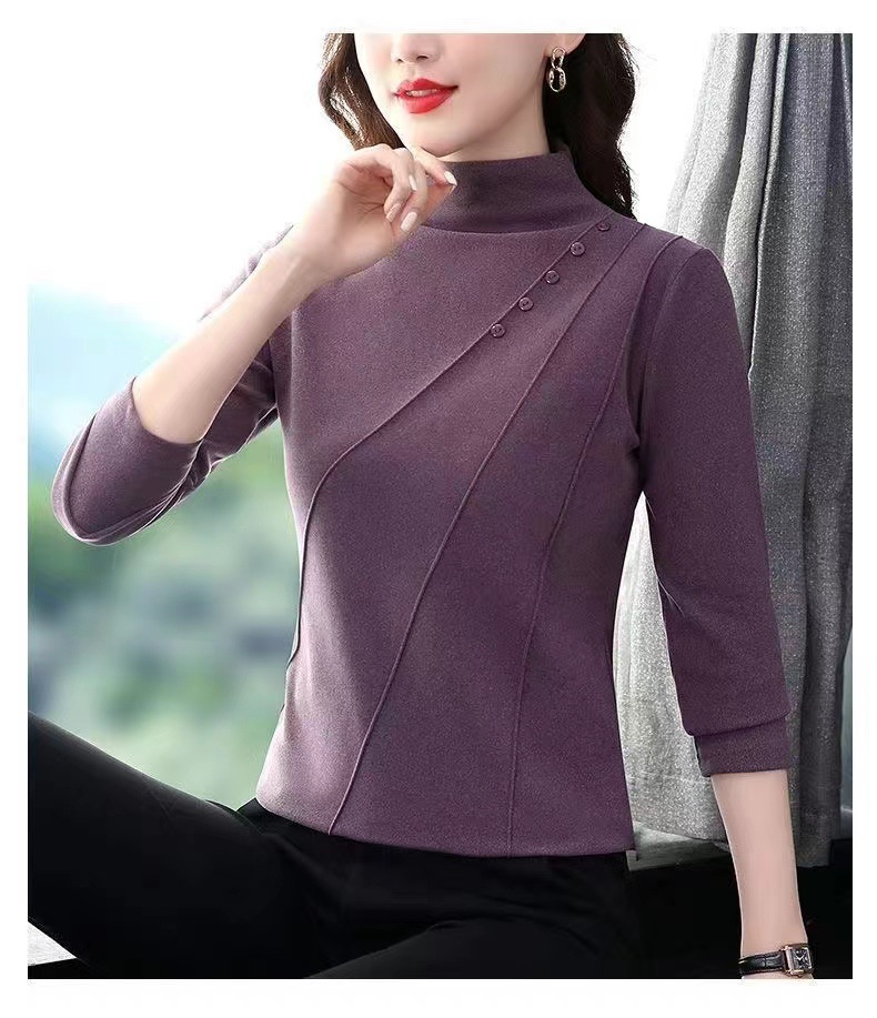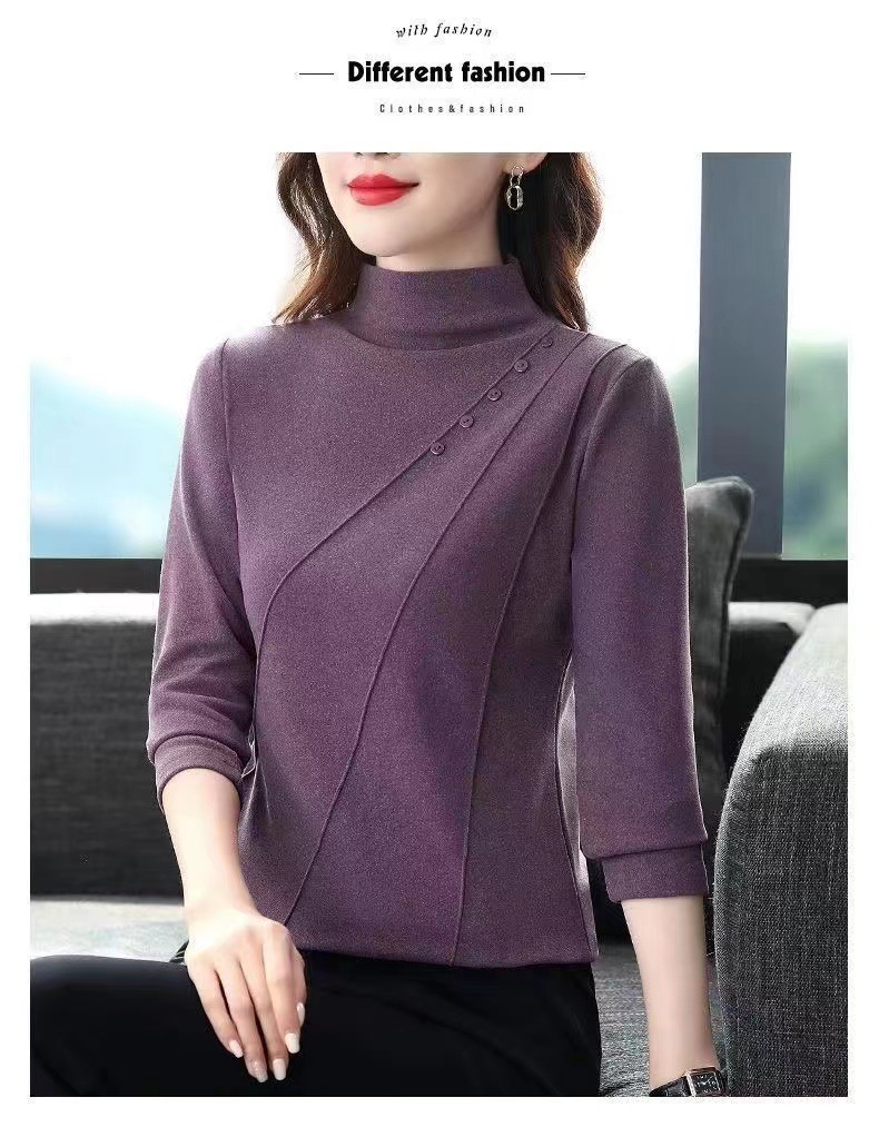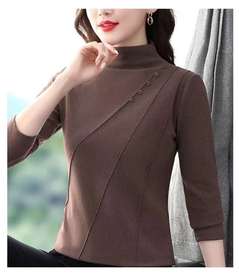 【买一送一】半高领t恤妈妈装双面德绒加厚打底衫女秋冬装长袖T恤上衣修身显瘦打底衫