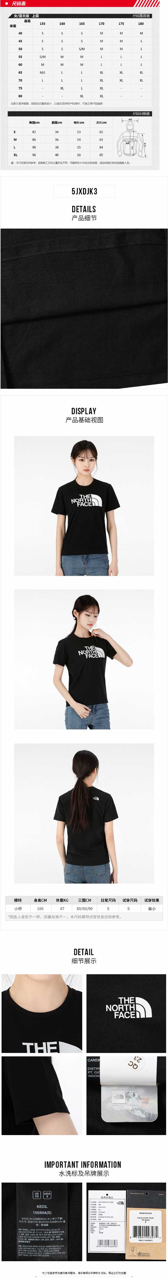 北面2022春夏新款短袖女士户外运动休闲半截T恤NF0A5JXDJK31
