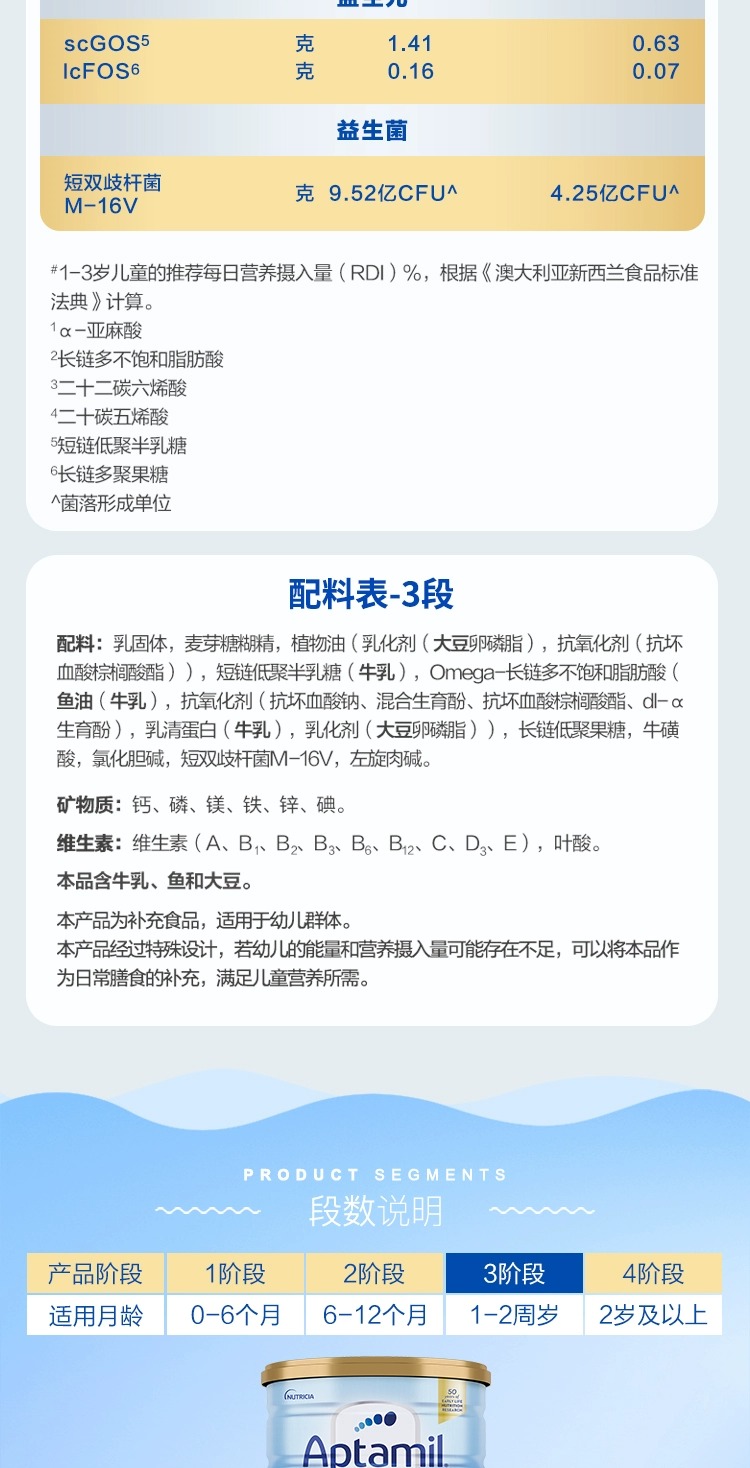 | 厂名: 澳洲Aptamil爱他美 | 配料表: 见包装 |