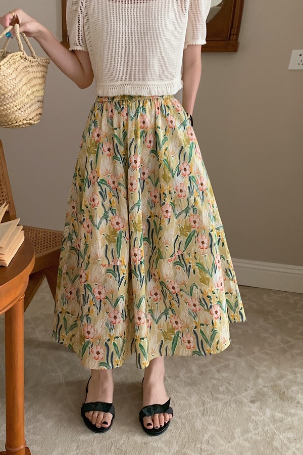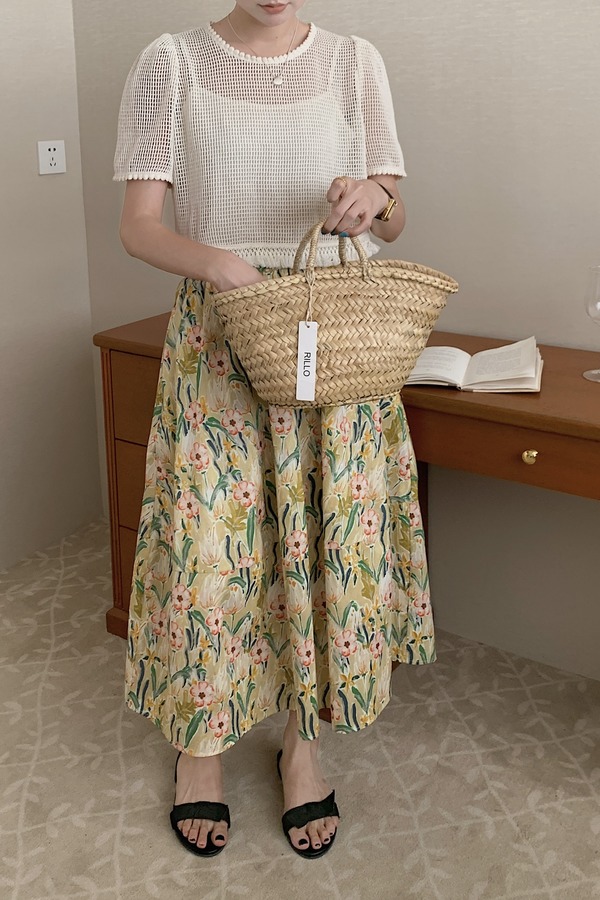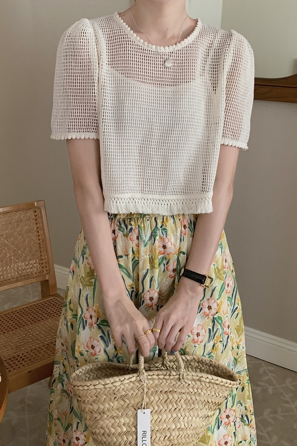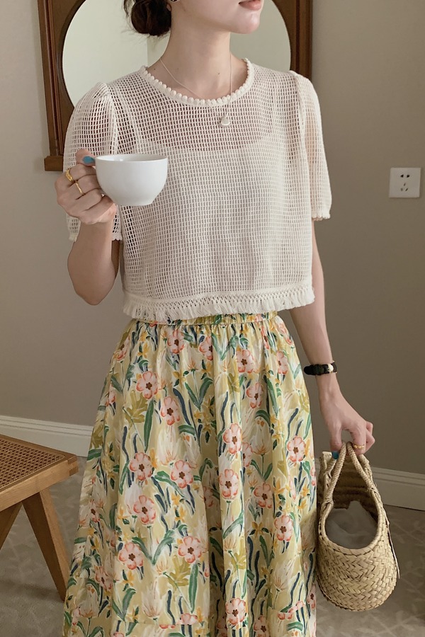 SUMMER & SAGE 杏色镂空流苏上衣花朵半裙套装 18587