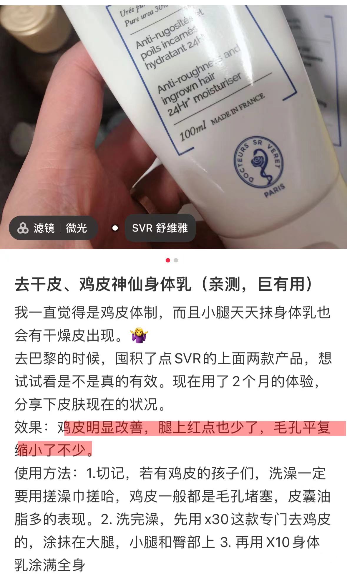 普遍用于护理毛周角化(鸡皮)