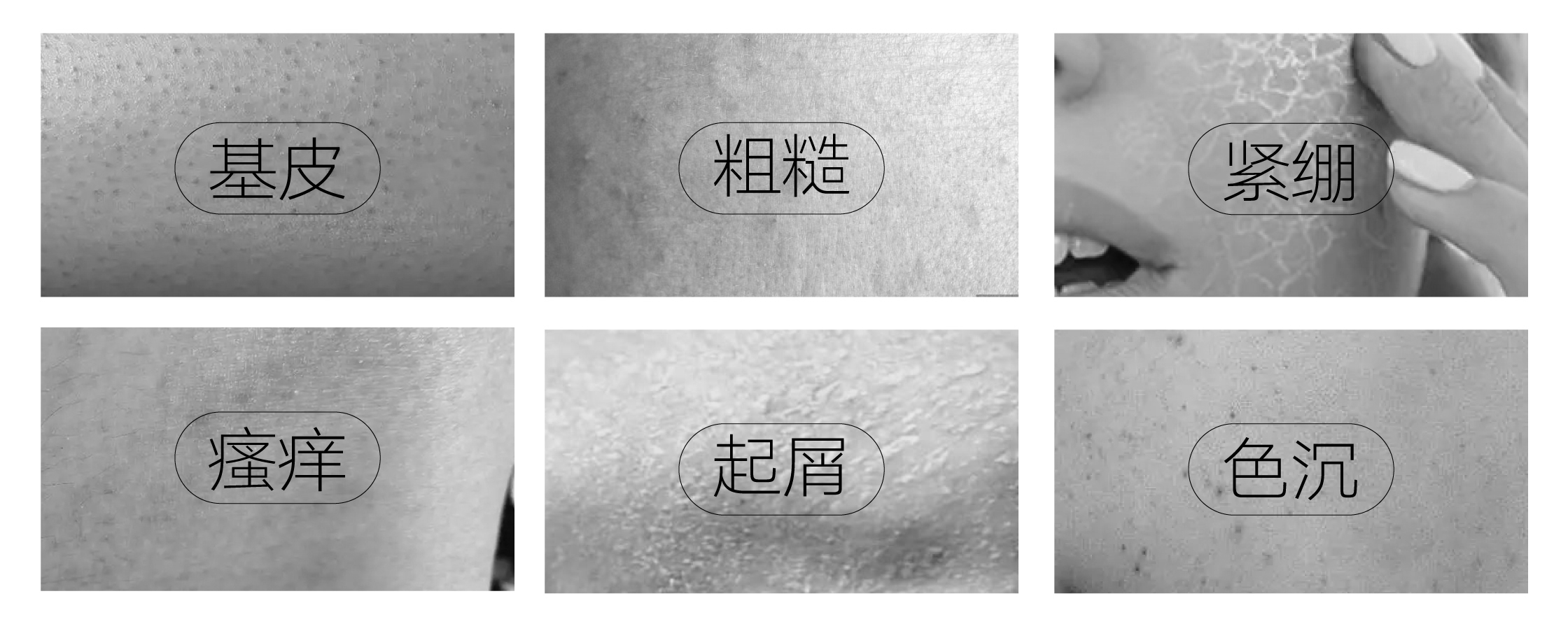 干性诗整、加重基皮、紧绷抓挠