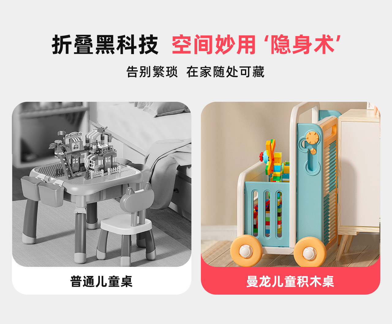 【冬日暖拥】曼龙儿童多功能积木桌男孩女孩游戏桌可折叠画板益智宝宝儿童礼物