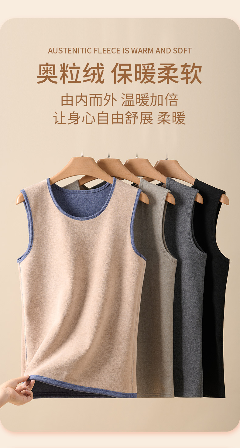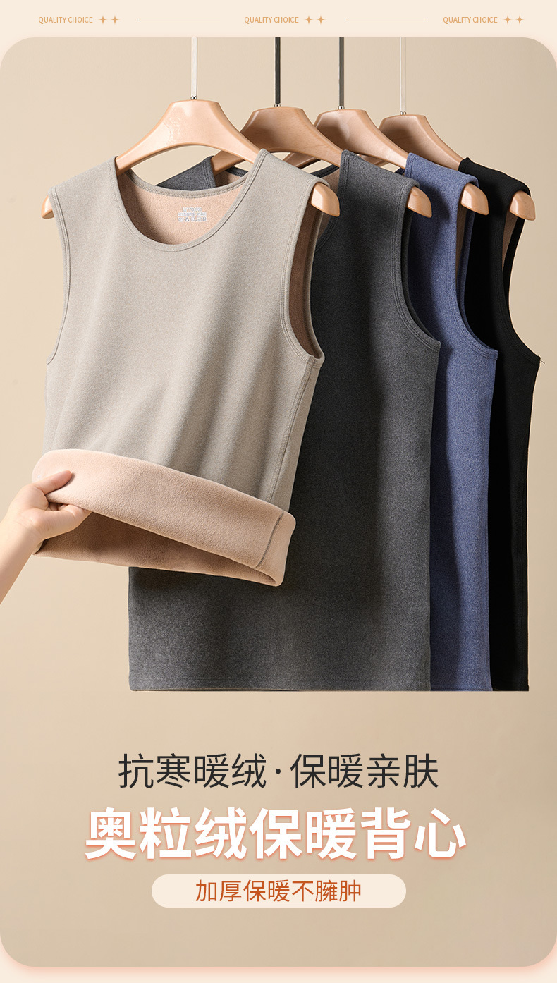 【加厚升级&加倍温暖】奥粒绒男士保暖背心 加绒加厚秋冬打底衫 青年坎肩马甲 无袖上衣防寒
