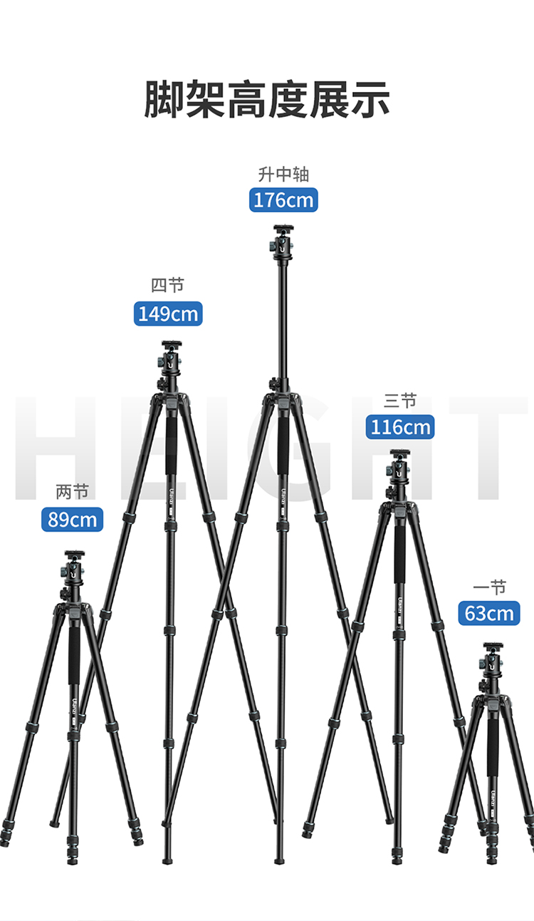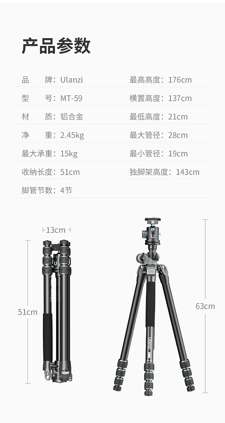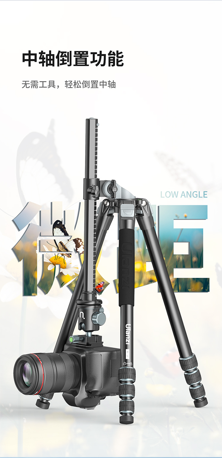 Ulanzi优篮子 MT-59铝合金反折俯拍三脚架专业摄影单反相机支架便携摄像机手机三角架微单全景云台金属脚架