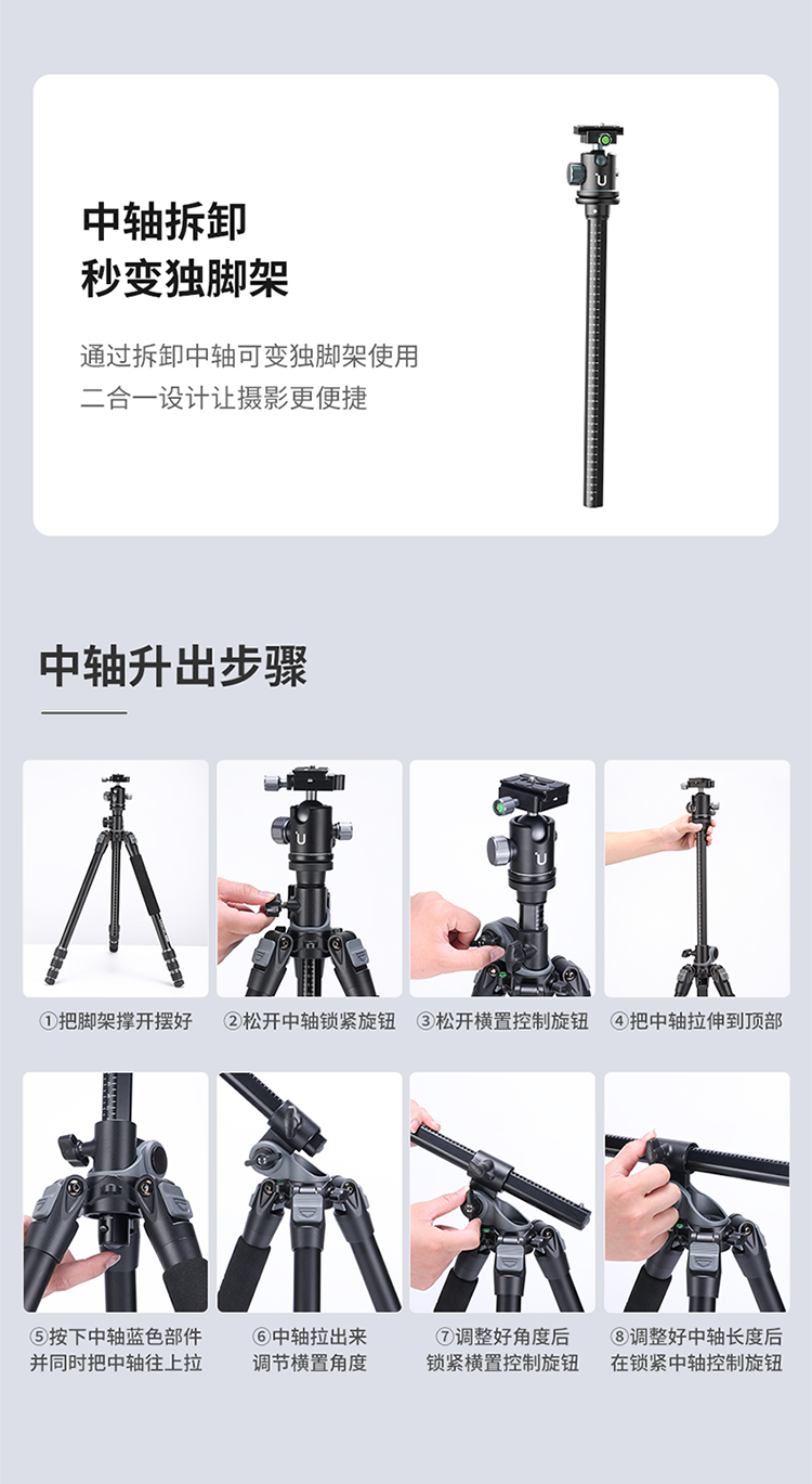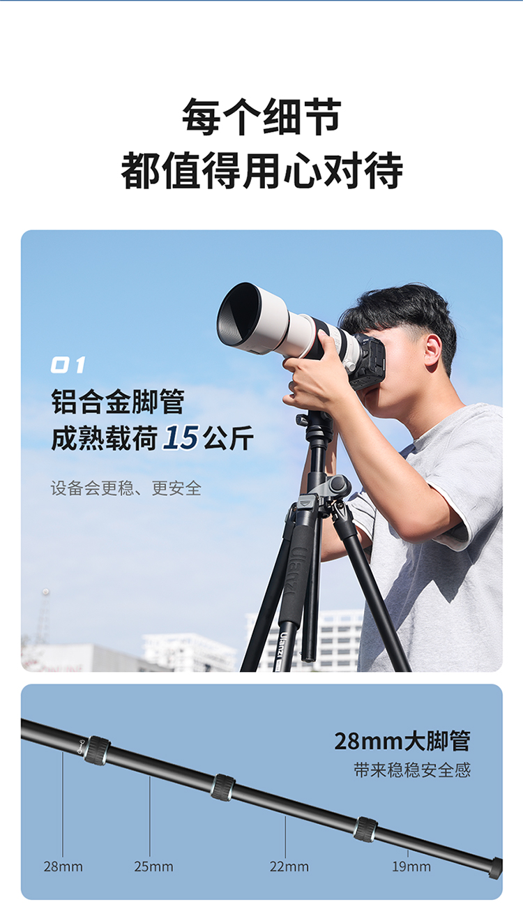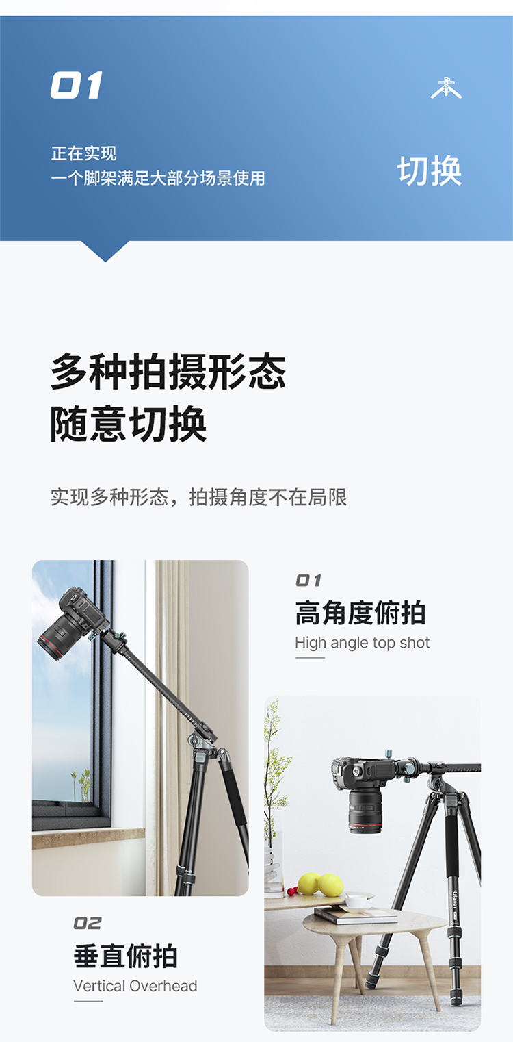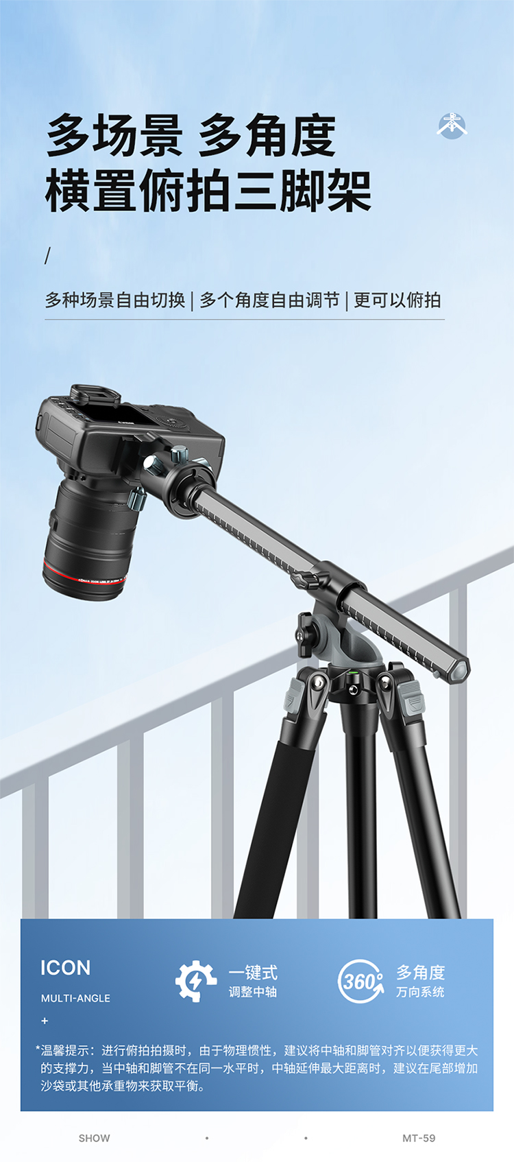 Ulanzi优篮子 MT-59铝合金反折俯拍三脚架专业摄影单反相机支架便携摄像机手机三角架微单全景云台金属脚架