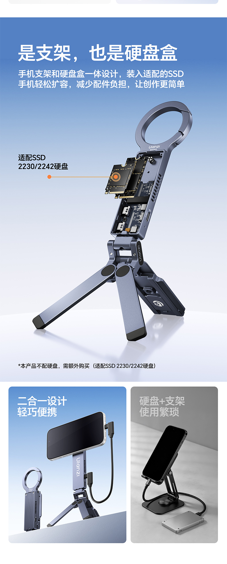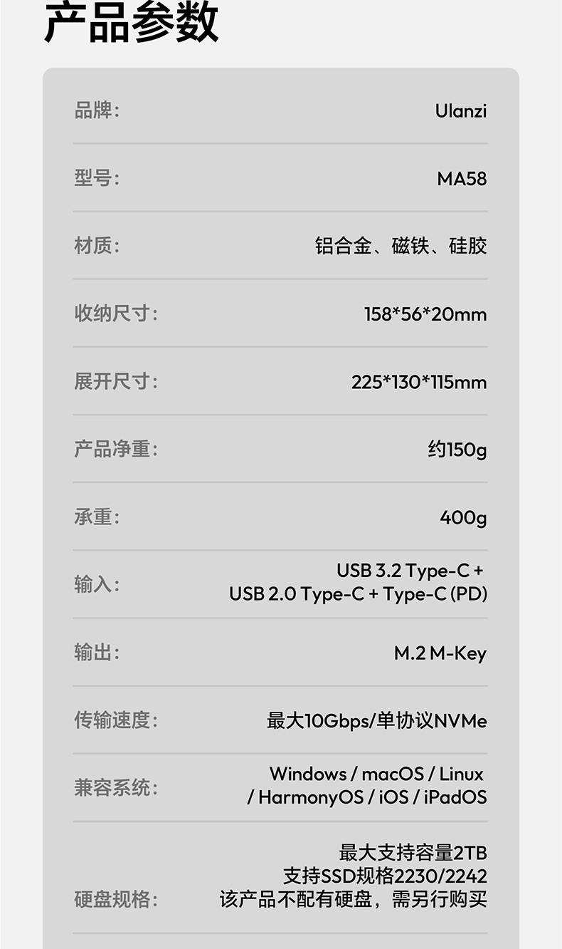 Ulanzi优篮子MA58MagLock硬盘盒手机支架